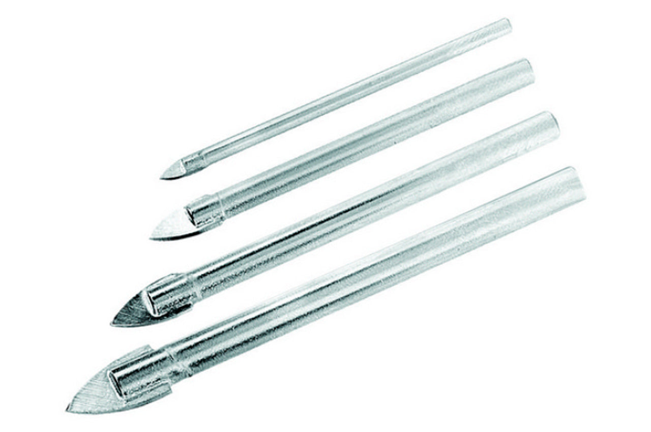 Набор сверл по стеклу и керамике "Granite" - 4 шт. Диаметр сверла: 4 – 8 мм. Твердосплавная напайка из карбида вольфрама HRC 89-90 алмазная заточка сверления отверстий в стекле, стеклопластике, зеркале, керамике и фарфоре.