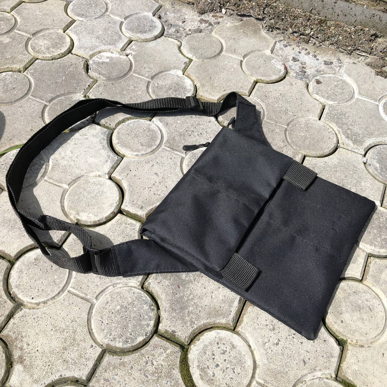 Сумка имеет удобный и практичный ремешок, который можно отрегулировать по длине благодаря специальному фиксатору, поэтому Вы сможете её носить как на уровне пояса, так и на уровне грудной клетки для быстрого доступа к важным элементам, таким как: фонарик, газовый баллончик или же пневматический пистолет.
