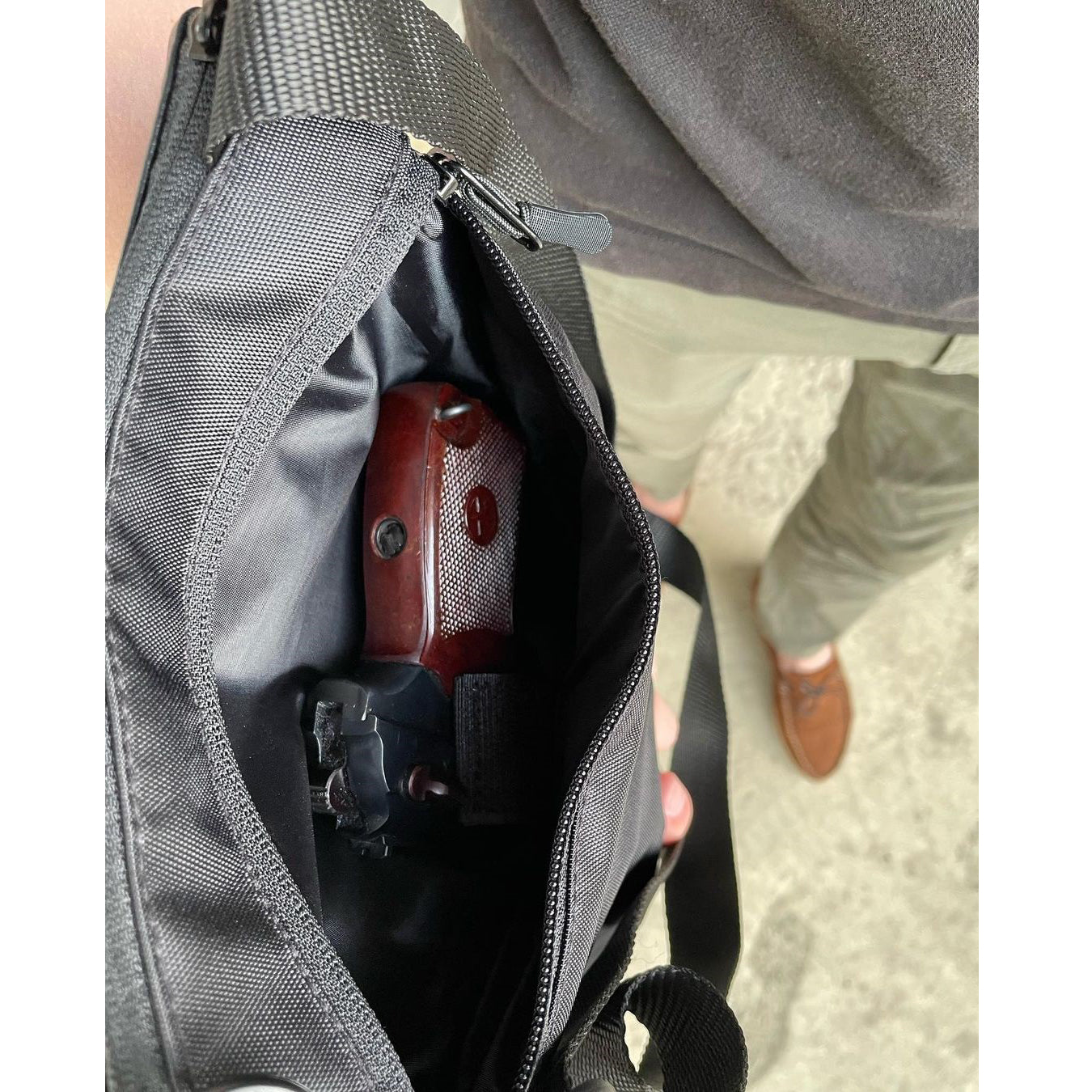 - Скрытый карман для оружия с быстрым доступом