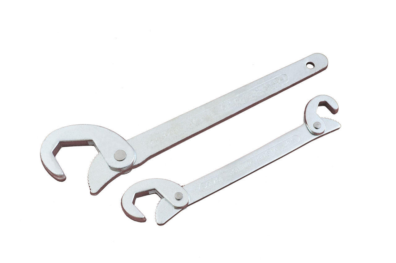При использовании данного вида ключей, нет необходимости снимать инструмент с рабочей поверхности после каждого поворота. Он изготовлен из высококачественной инструментальной стали, что гарантирует высокую износостойкость и защиту от коррозии в процессе работы. Большой ключ рассчитан на 23-32 мм, малый на 9-14 мм и 15-22 мм. Размеры ключей: 9-32 мм