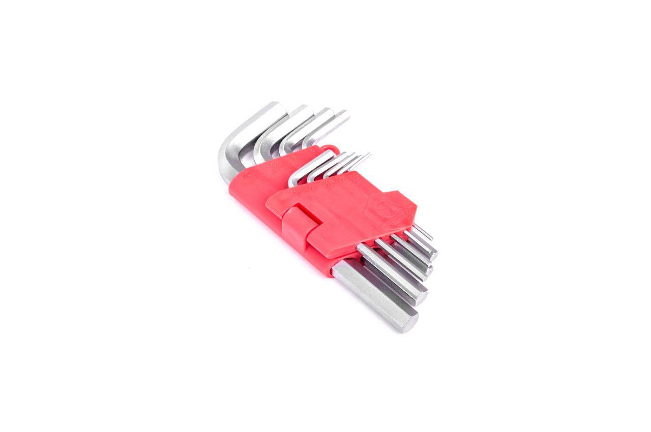 Набор Г-образных шестигранных ключей HT-0601 применяется для завинчивания болтов со шлицом шестигранной формы. Преимуществом ключей данной формы является возможность не вынимать ключ из болта при полном обороте. Литые ключи из хром-ванадиевой стали имеют высокие эксплуатационные характеристики и защищены от коррозии. Матовое покрытие позволяет поддерживать опрятный внешний вид инструмента гораздо дольше, нежели глянцевый. Ключи помещены в специальный держатель, который обеспечивает удобство хранения. Особенности Матовое покрытие, Защита от коррозии, Литые, Поставляются в специальном держателе. Типы ключей: Г-образные шестигранные; Количество ключей: 9 ед.; Размеры ключей: 1.5-10 мм; Твердость по шкале Роквелла: 52-55 HRC