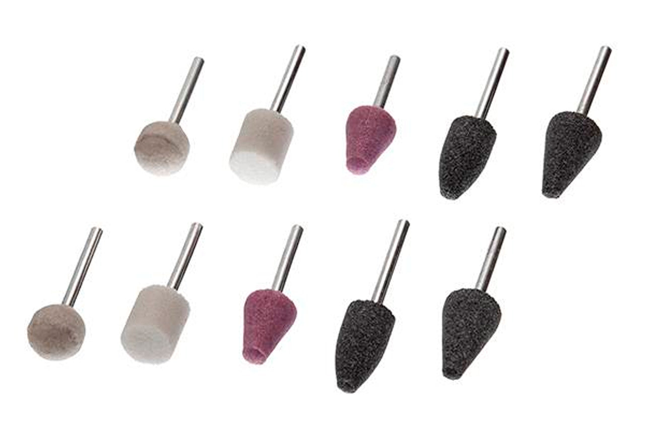 Набор шлифовальных камней в количестве 10 шт. (по 2 шт. каждого вида) применяется для ручных слесарных работ по внутреннему шлифованию, снятию заусенцев и зачистке фасонных поверхностей, где не могут быть применены шлифовальные круги. Область работ: металл, дерево, гранит. Диаметр стержня 3 мм Количество: 10 шт; Диаметр стержня: 3 мм