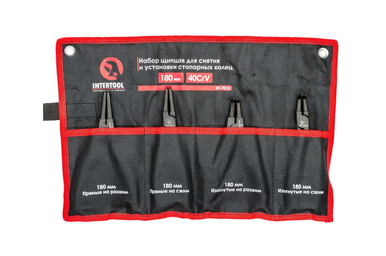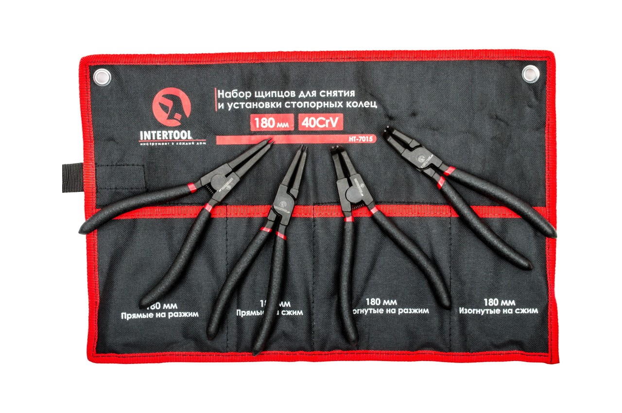 Набор щипцов для стопорных колец Intertool - 180 мм фосфат (4 шт.)
