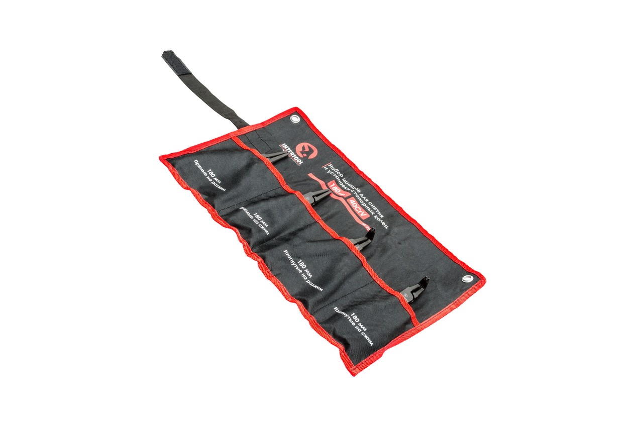 Набор щипцов для стопорных колец - необходимый помощник во время ремонта авто, мото техники и пр. Это полезный инструмент на СТО, в мастерской и в любом гараже. Набор прямых и изогнутых съемников стопорных колец – незаменимые инструменты, когда необходима аккуратная и быстрая установка или снятие стопорных колец. Изготовлены из прочной 40CrV стали, методом ковки. Отличаются повышенной износостойкостью и выдерживают значительные нагрузки, в условиях длительного применения. Фосфатированное покрытие защищает от износа, тем самым щипцы меньше подвергаются механическим повреждениям и защищены от коррозии. Прецизионные, точные наконечники щипцов имеют специальную форму, предотвращающую срыв и деформацию стопорного кольца. Они прошли специальную термическую обработку для достижения высокой твердости. Ручки щипцов с антискользящим покрытием, гарантируют комфорт мастера во время работы. Поставляются в прочном чехле с люверсами для подвешивания на стену. Особенности 4 популярных размера щипцов для наружных и внутренних стопорных колец Фосфатированные, точные наконечники Удобная нескользящая ручка Чехол из прочного полиэстера с лентой на липучке, для компактного хранения или транспортировки Особенности: фосфатированные