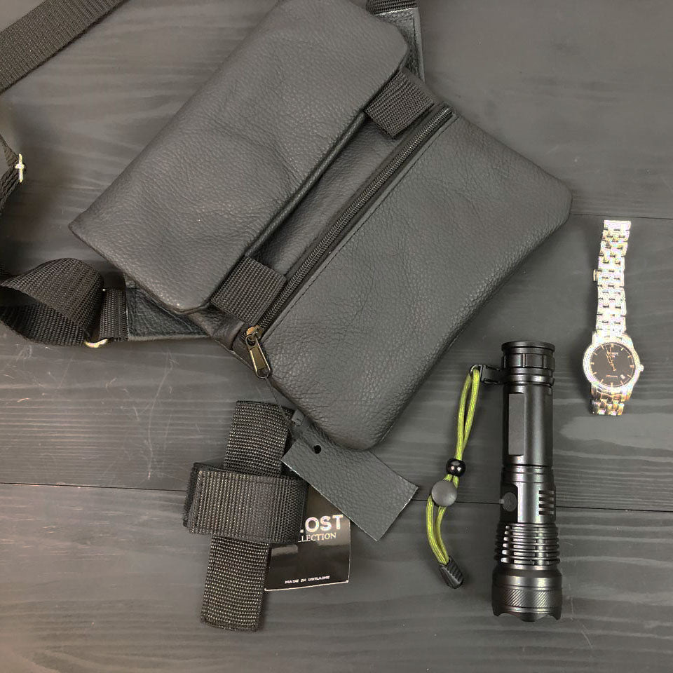 Набор 2В1. Кожаная сумка с кобурой + фонарик профессиональный POLICE BL-X71-P50