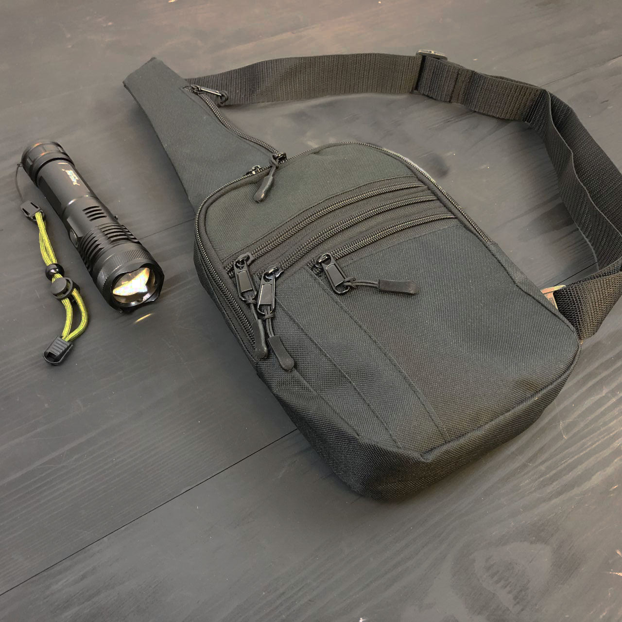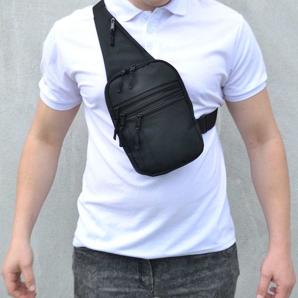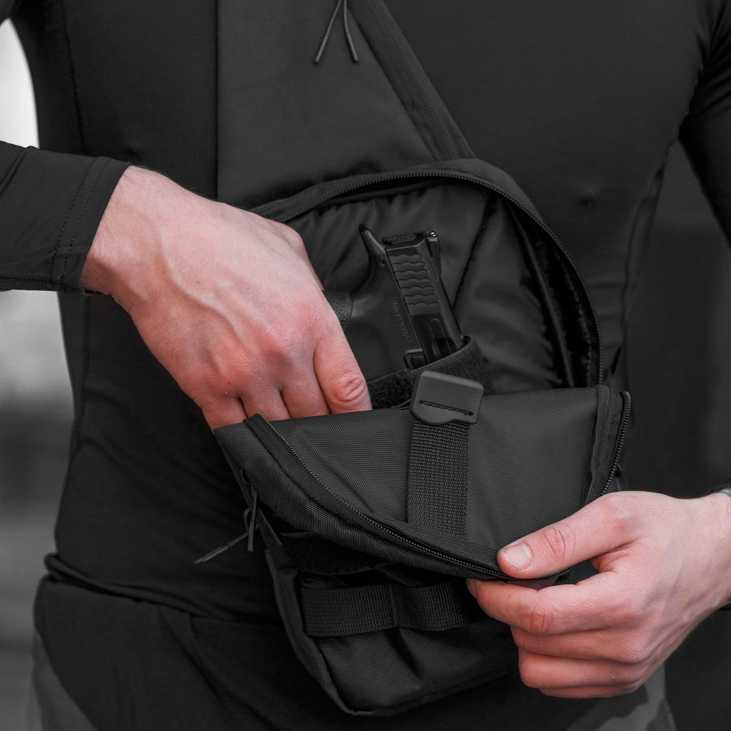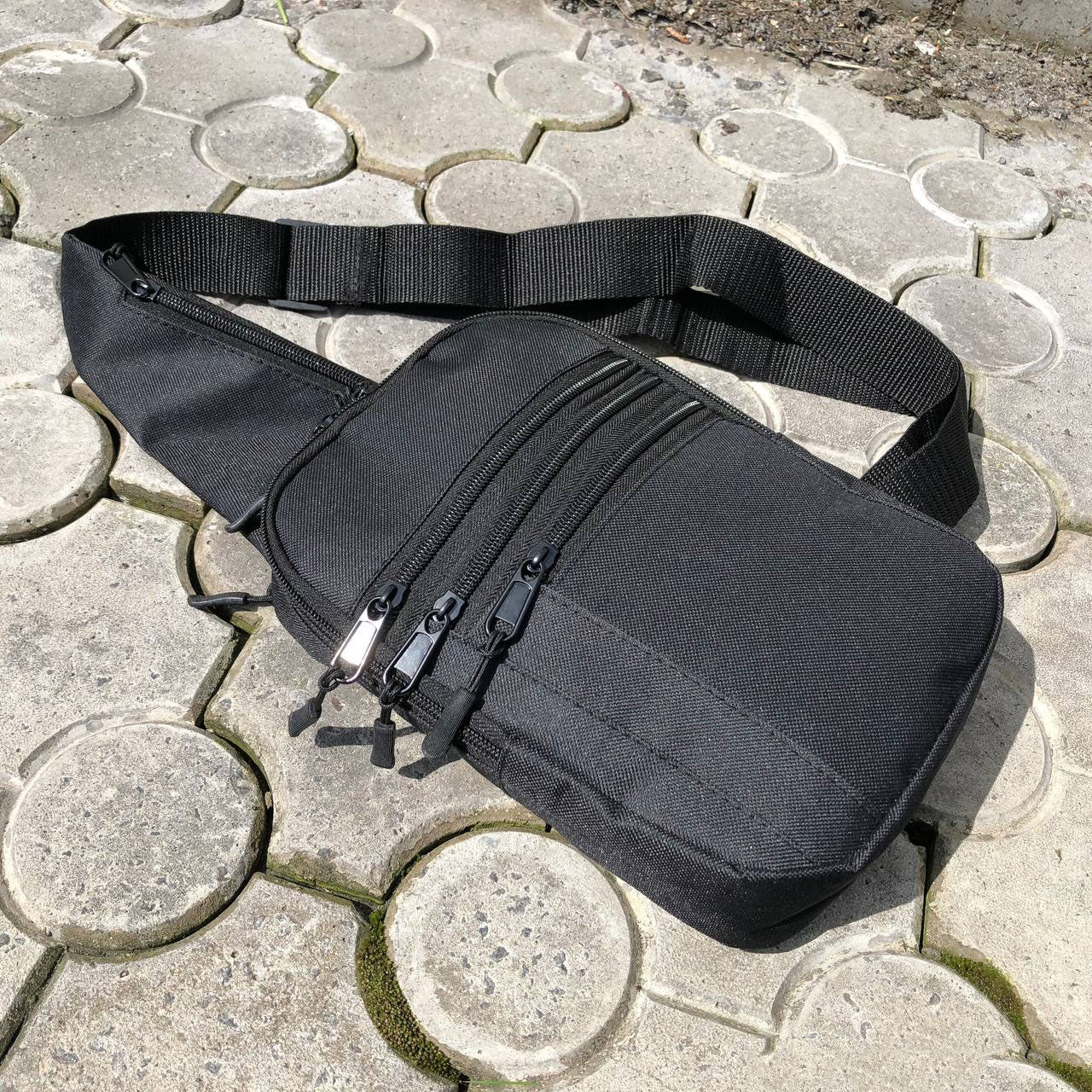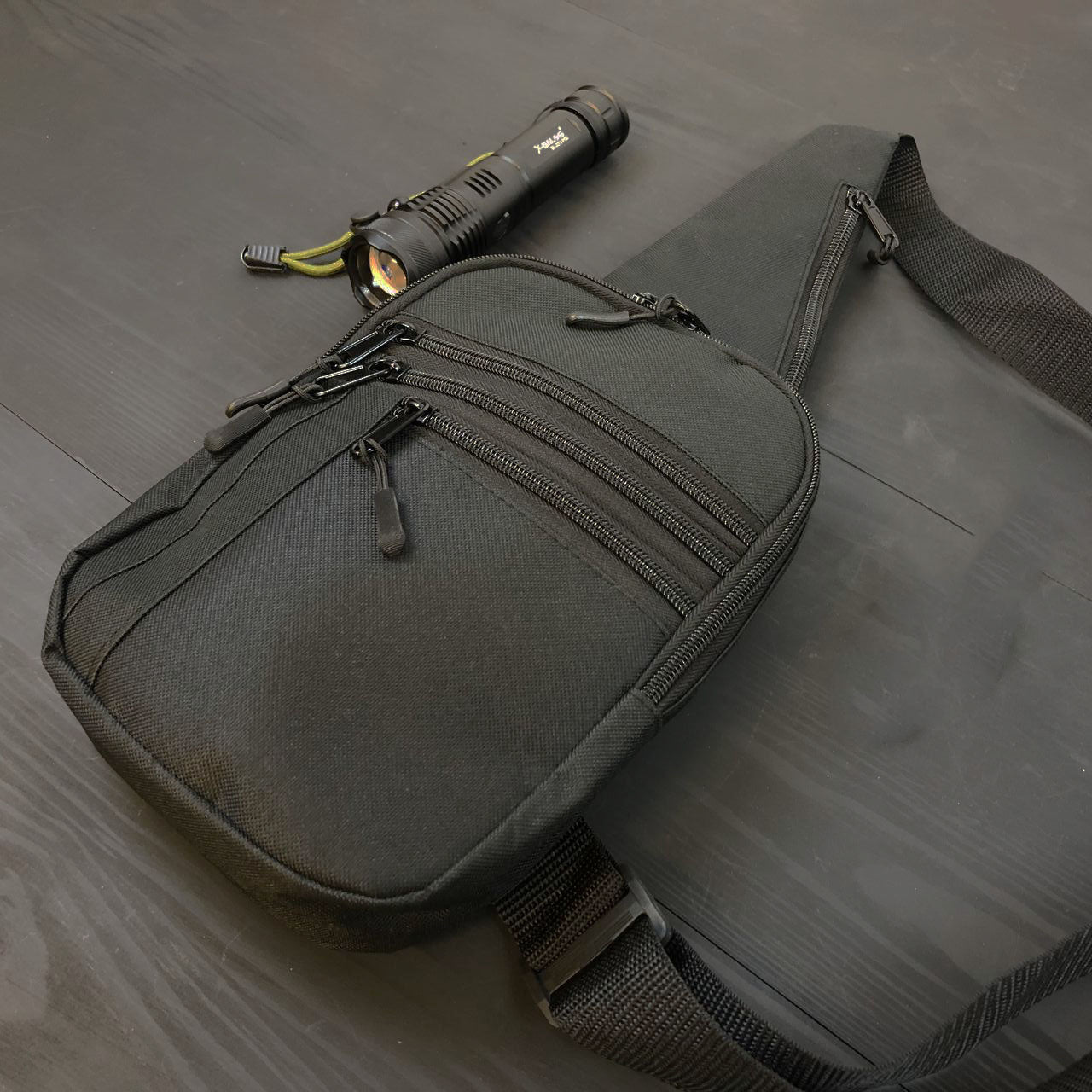 Качественная тактическая сумка с кобурой под оружие на 6 карманов, черная.