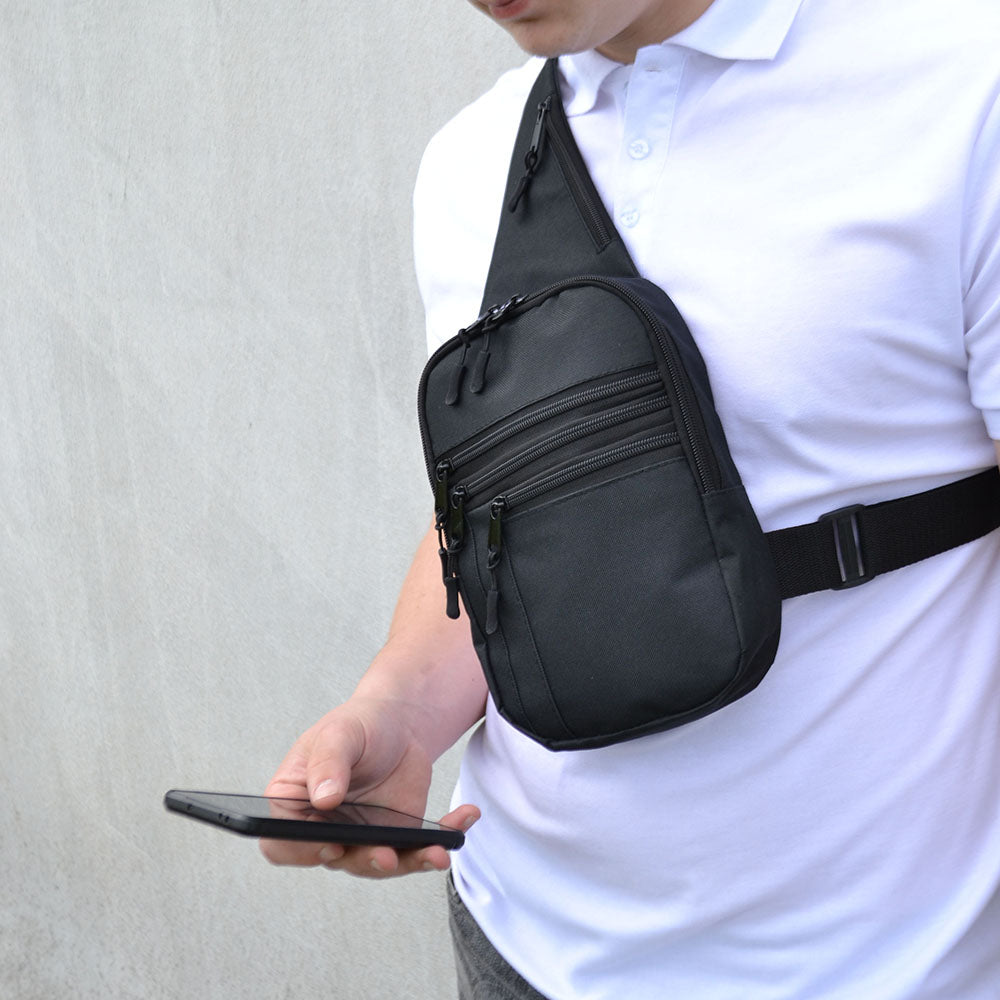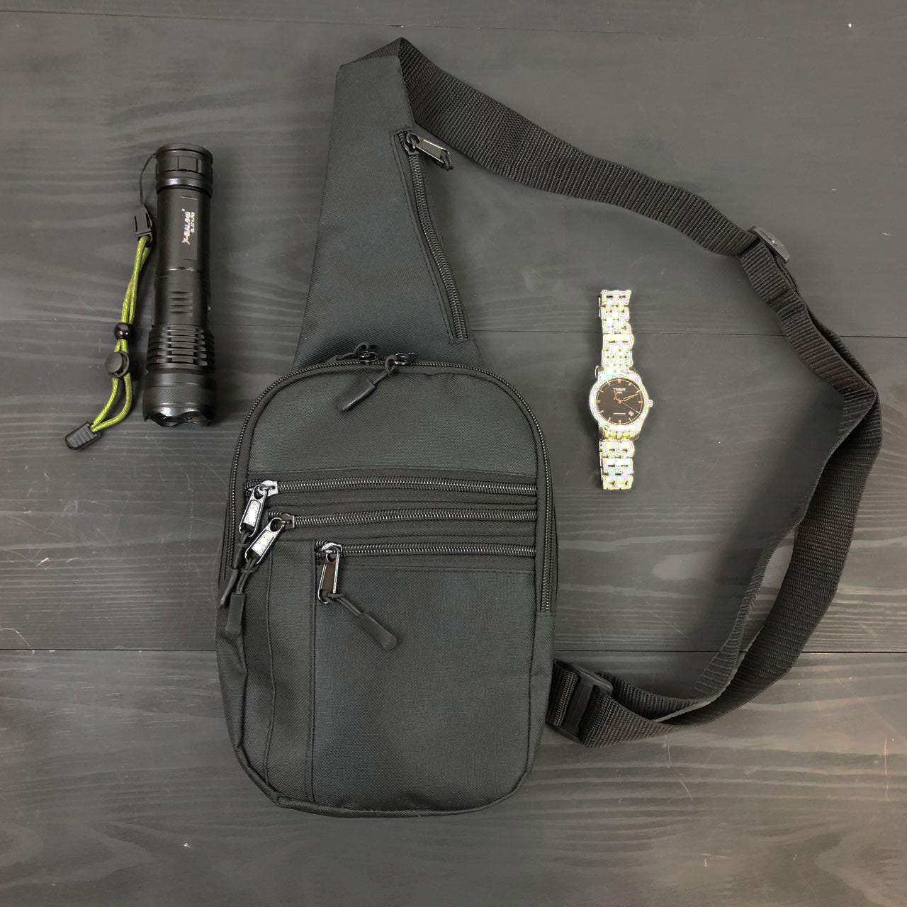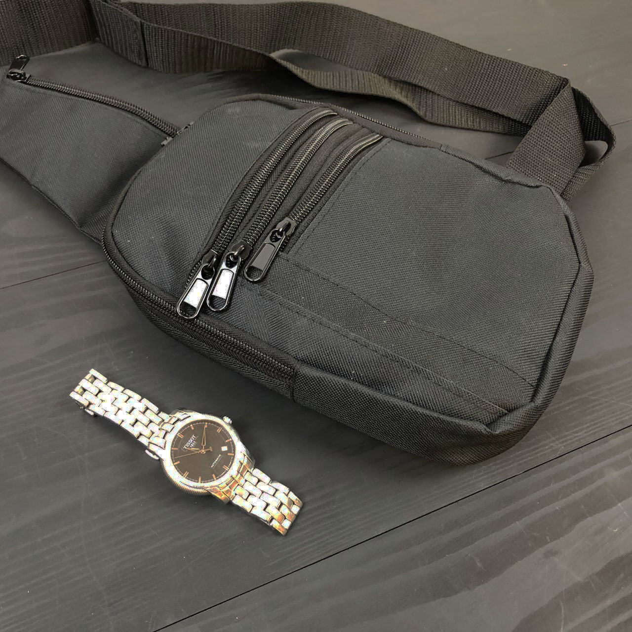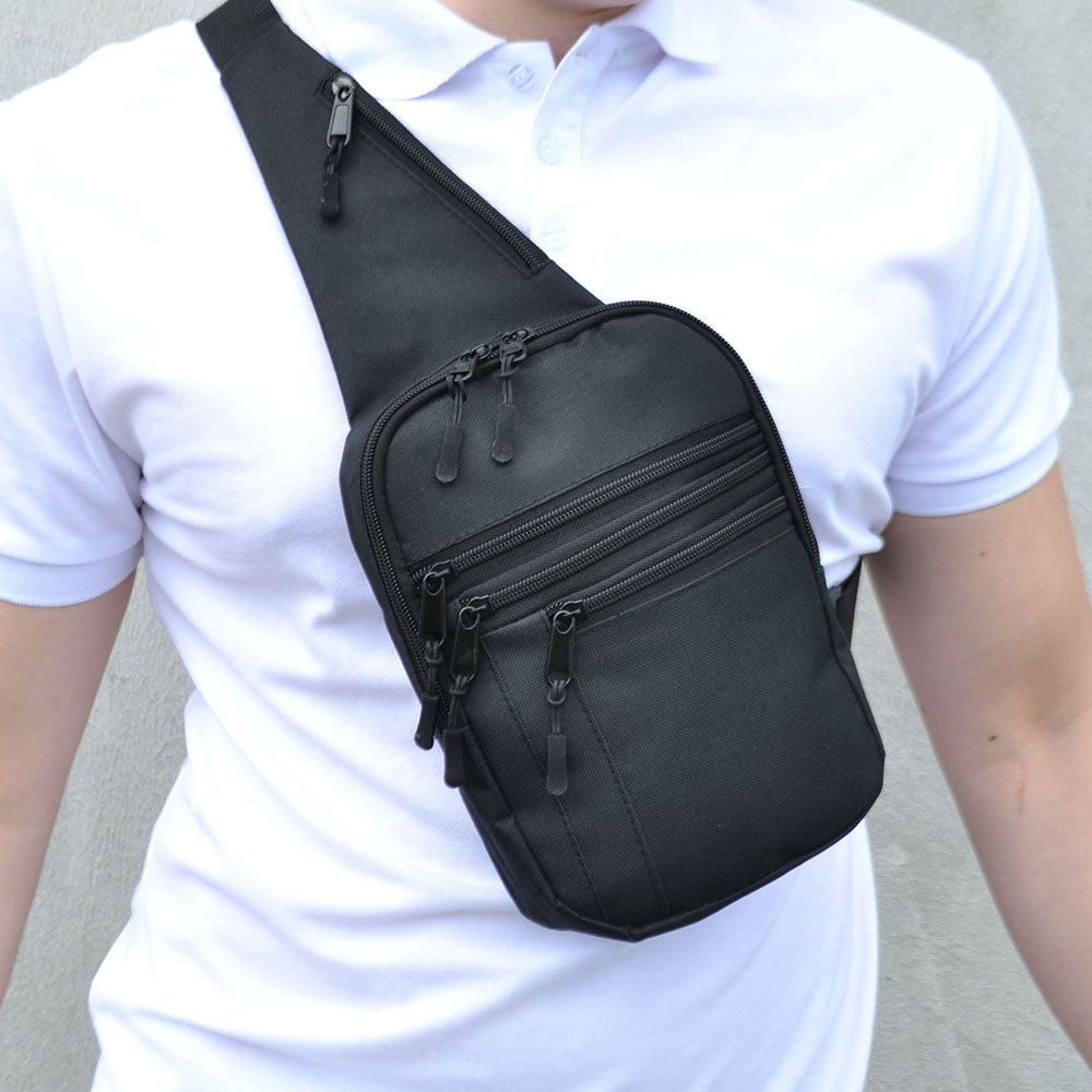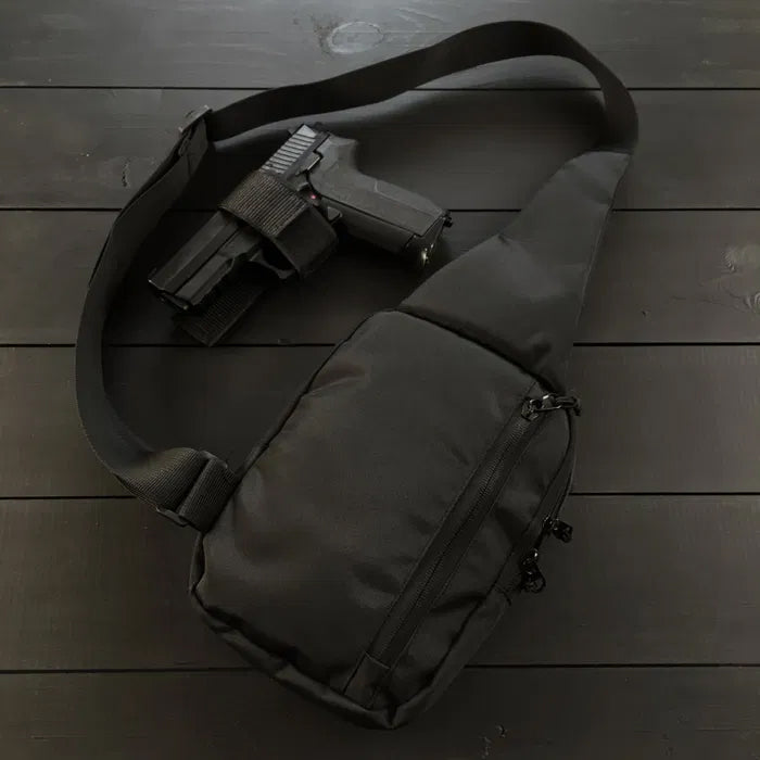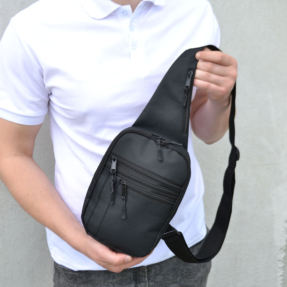 Качественная тактическая сумка с кобурой под оружие на 6 карманов, черная.