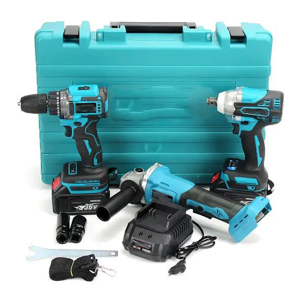 Набор 3/1 аккумуляторных инструментов в кейсе: болгарка, шуруповерт, гайковерт