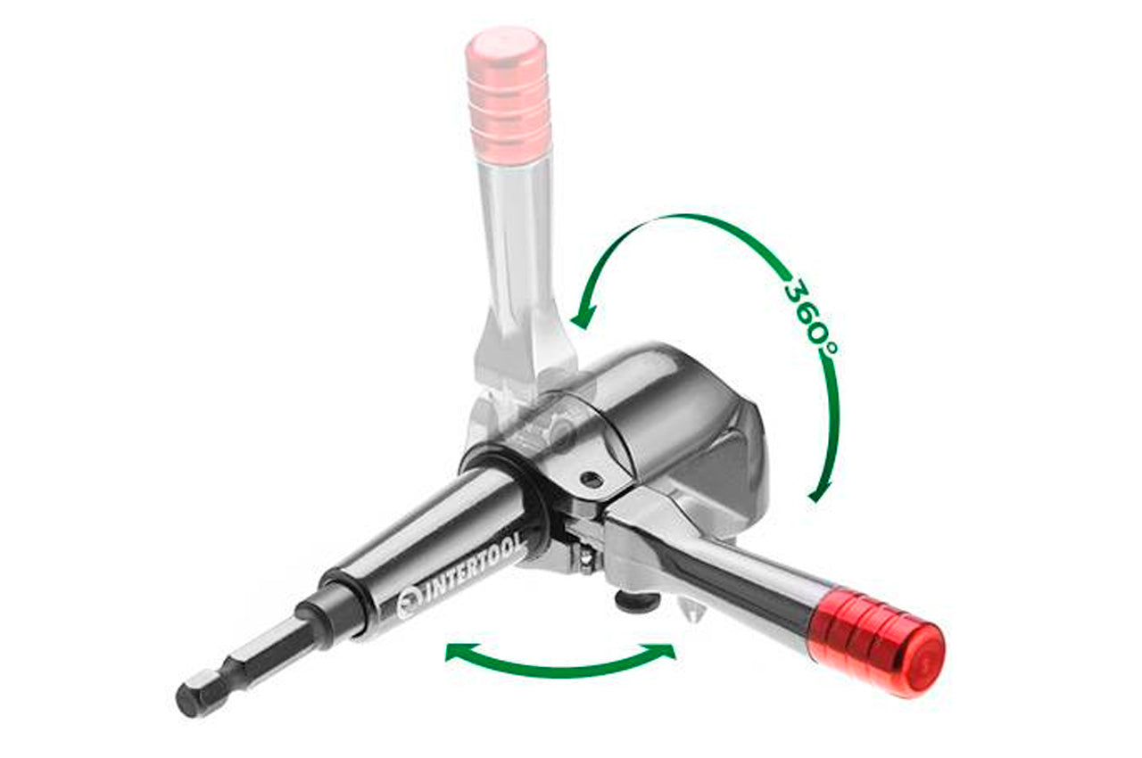 Насадка INTERTOOL VT-0116 расширяет возможности вашего инструмента и позволяет легко завинчивать/откручивать шурупы или просверливать отверстия в труднодоступных местах. Редуктор установлен под углом 90˚. Насадка универсальна и используется со всеми моделями дрелей и шуруповертов.