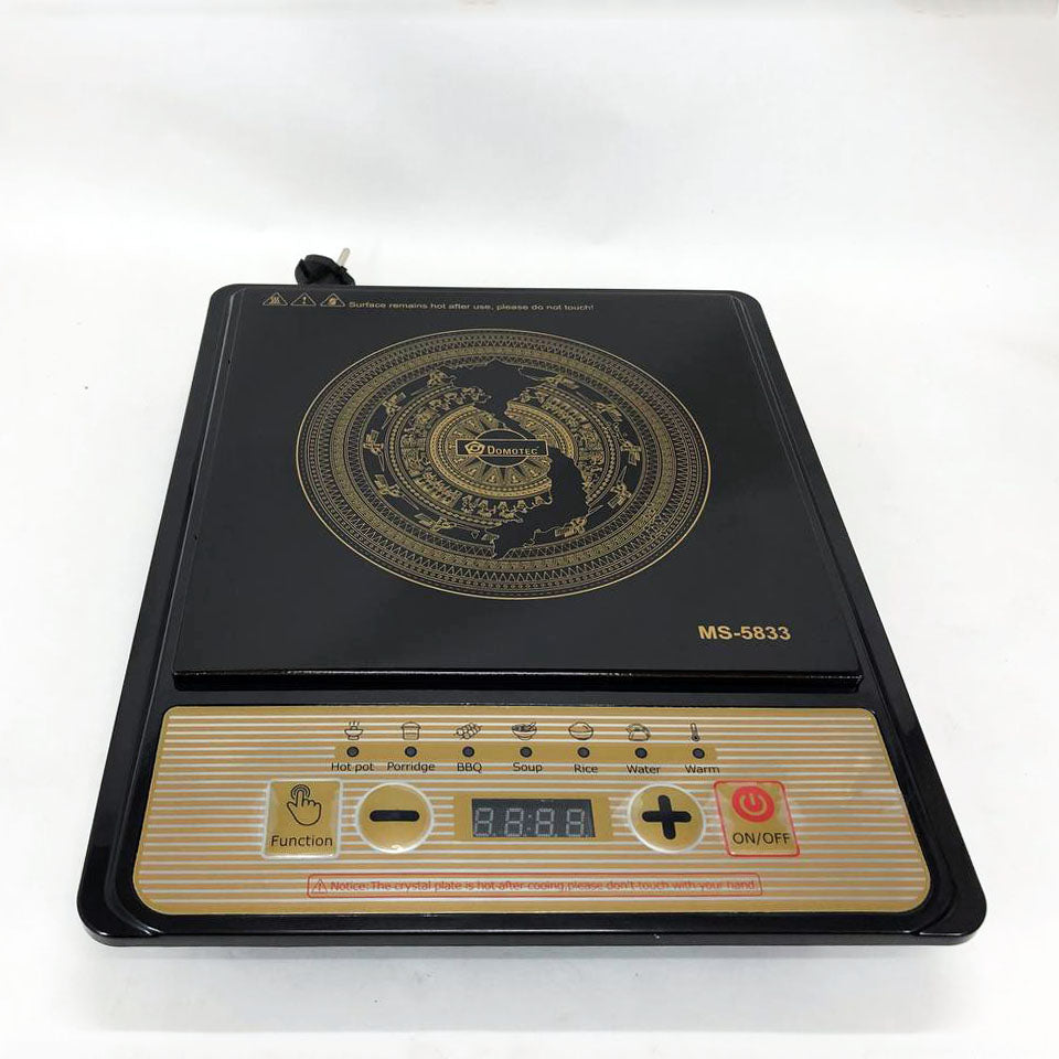 Плита Domotec MS-5833 — одноконфорочная индукционная электроплита мощностью 2000 Вт, которая мгновенно нагревается и быстро готовит пищу. Сенсорный дисплей превратит процесс управления плитой в интересное занятие. Кристаллическое стекло, из которого сделана техника, крепкое и устойчивое к царапинам, легко очищается от загрязнений. Прибор устанавливается на стол, не скользит по поверхности. Плита электрическая настольная совместима со всеми видами индукционной посуды. Сенсорная кнопочная панель управления. Быстрый и равномерный нагрев на всей нагревательной поверхности. 7 режимов (программы) приготовления: разогрев, жарка, барбекю, кипячение, суп, каша с молоком, рис.