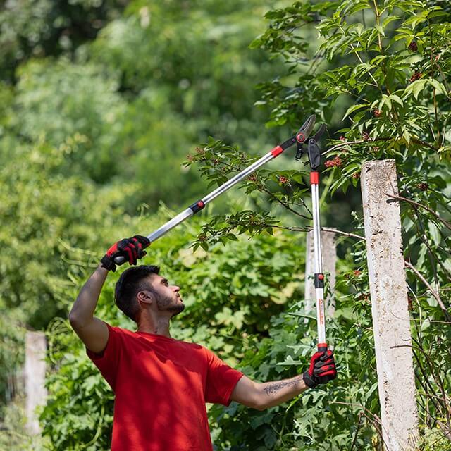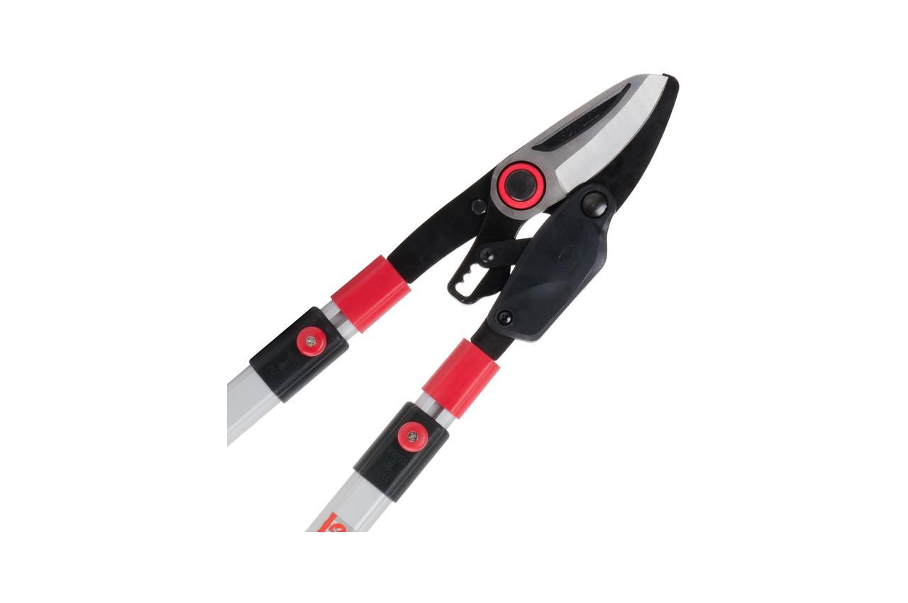 Ваша работа становится в пять раз легче, благодаря мощным лезвиям из высоколегированной стали с 5-ти ступенчатым храповым механизмом. Режет живую толстую ветвь (до 40 мм) без особого труда. Подойдет также для обрезки деревьев на высоте – длина сучкореза регулируется телескопическими ручками (max - 103 см). Рукоятки не скользят в ладони и гарантируют надежный хват, т.к. имеют шероховатую поверхность для более комфортной работы. Максимальный диаметр реза: 40 мм; Материал рукояток: алюминий; Материал лезвия: сталь; Длина лезвия: 100 мм; Общая длина: 700-1030 мм