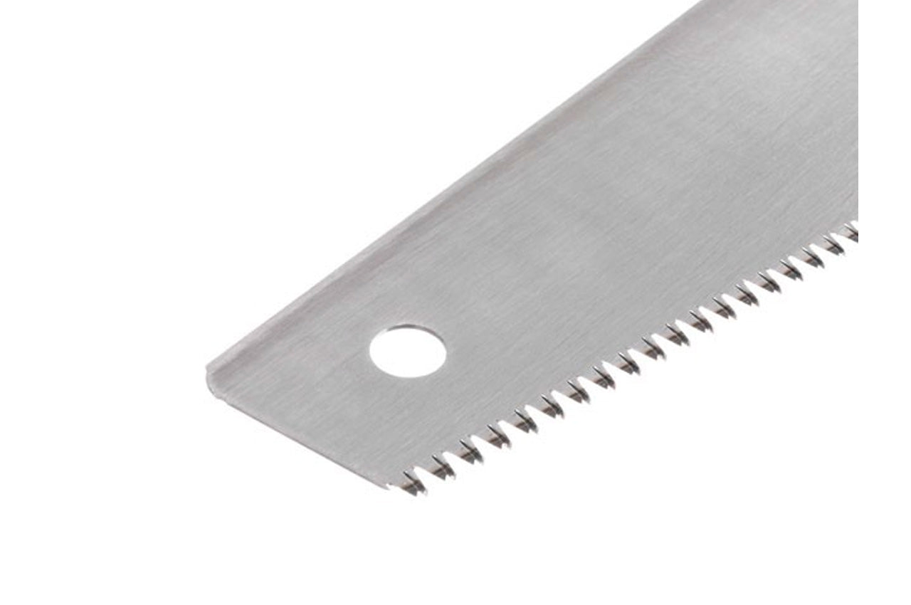 Ножовка по дереву изготовлена из высококачественной стали твердостью 55 HRC. Длина рабочей поверхности - 400 мм. Каленые зубья (11 зубьев x 1 дюйм) особой формы с тройной заточкой обеспечивают быстрый рез в обе стороны - как вперед, так и на себя. Ножовка оснащена удобной рукояткой из высокопрочного пластика с накладками из термопластичной резины. Форма рукоятки позволяет откладывать углы 45° и 90°. Отлично подойдет для поперечного распила досок и брусков, материалов из фанеры, ДВП, ДСП, плинтусов, наличников и пр. Применение: для дерева; Количество зубьев: 11x1"; Твердость по шкале Роквелла: 55 HRC; Материал рукоятки: высокопрочный пластик с резиновыми накладками