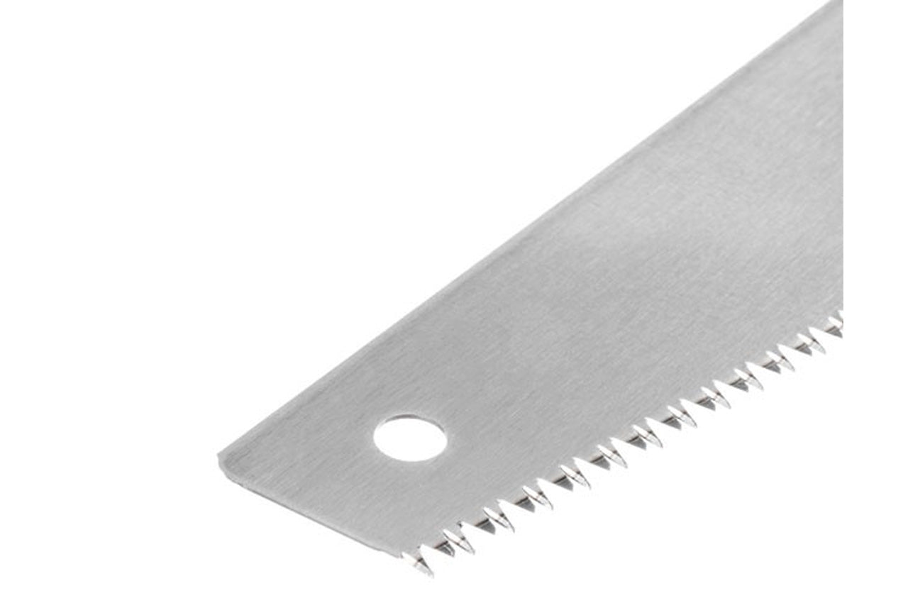 Ножовка по дереву изготовлена из высококачественной стали твердостью 55 HRC. Длина рабочей поверхности - 450 мм. Каленые зубья (7 зубьев x 1 дюйм) особой формы с тройной заточкой обеспечивают быстрый рез в обе стороны - как вперед, так и на себя. Ножовка оснащена удобной рукояткой из высокопрочного пластика с накладками из термопластичной резины. Форма рукоятки позволяет откладывать углы 45° и 90°. Отлично подойдет для поперечного распила досок и брусков, материалов из фанеры, ДВП, ДСП, плинтусов, наличников и пр. Применение: для дерева; Количество зубьев: 7x1"; Твердость по шкале Роквелла: 55 HRC; Материал рукоятки: высокопрочный пластик с резиновыми накладками