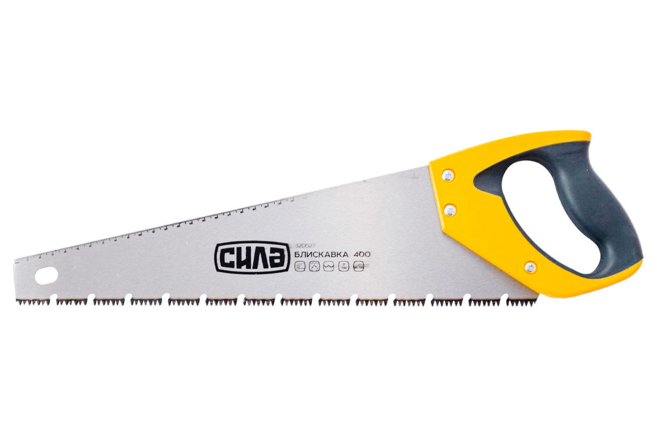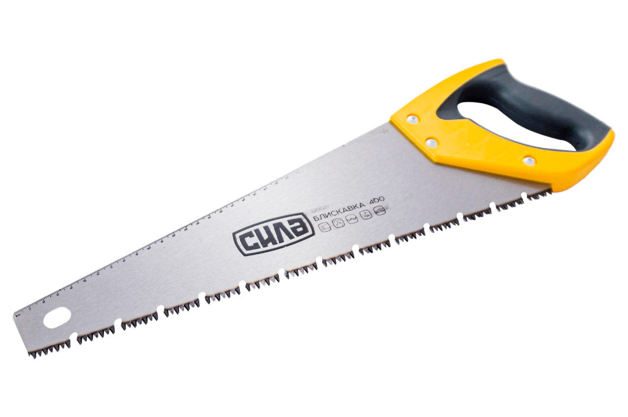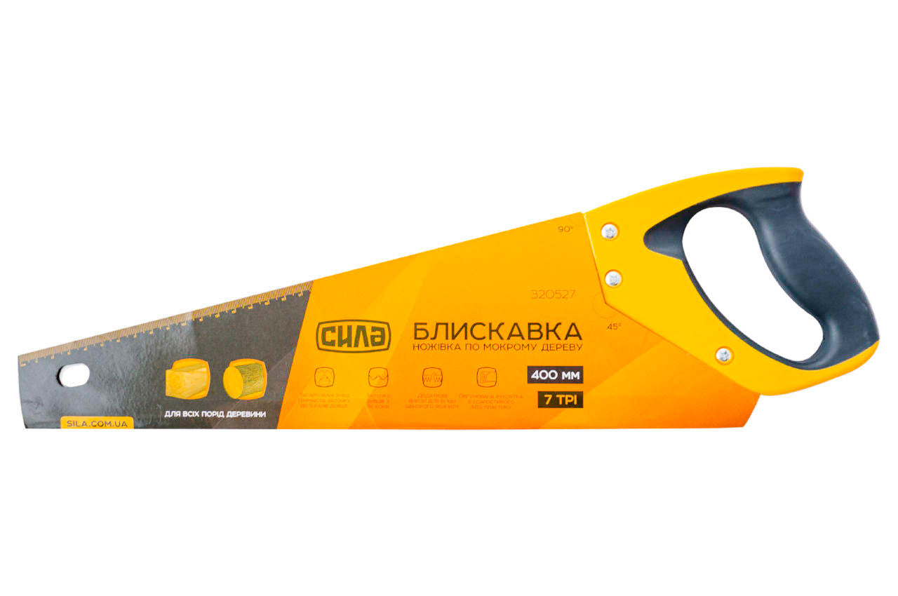 Ножовка по мокрому дереву Сила - 400 мм x 7T x 3D молния незаменимый инструмент для продольного и поперечного распила средних и мелких размеров древесины из мягких и твердых пород, ДСП, фанеры и ПВХ. Благодаря своим характеристикам и особенностям эта ножовка обеспечивает высокую эффективность и точность работы.