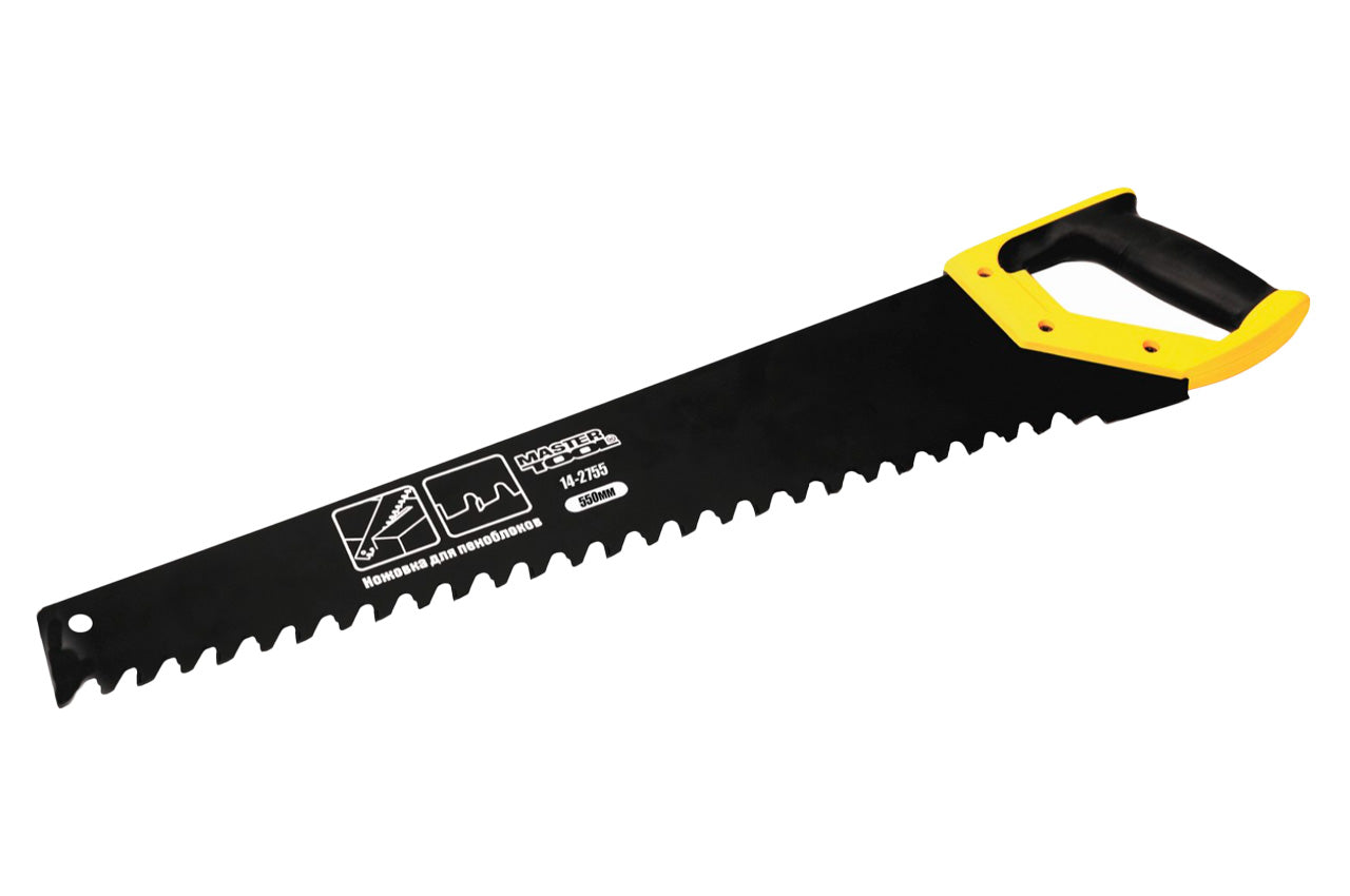 Ножовка по пенобетону Mastertool 550 мм сделана специально для распиливания таких стройматериалов, как пенобетон, гипсокартон, дерево, газобетон и пластмасса. Сталь полотна Mn65, а зубья имеют напайку из карбида и вольфрама, что повышает прочность и износоустойчивость инструмента. Рукоятка ножовки изготовлена из пластика, поэтому в процессе работы кисть руки не устает. Общая длина полотна 550 мм позволяет быстро и эффективно справляться с распиливанием материалов.