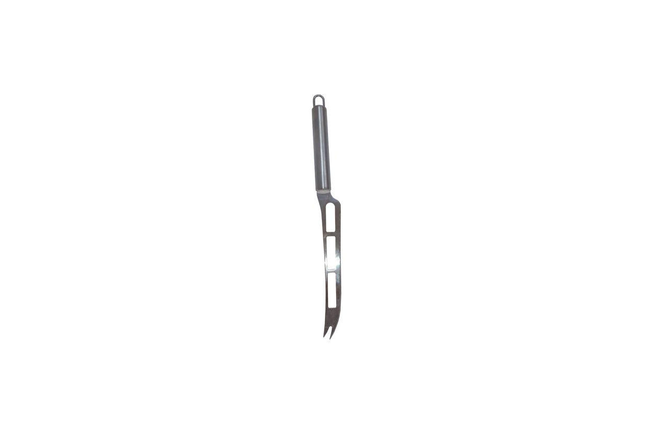 Нож для стейка и сыра (Бармена) Небольшой нож с плавной зубчатой режущей кромкой. Острие сделано раздвоенным, чтобы перекладывать уже нарезанные кусочки. Большие отверстия в лезвии ножа помогают отделению сыра от лезвия.