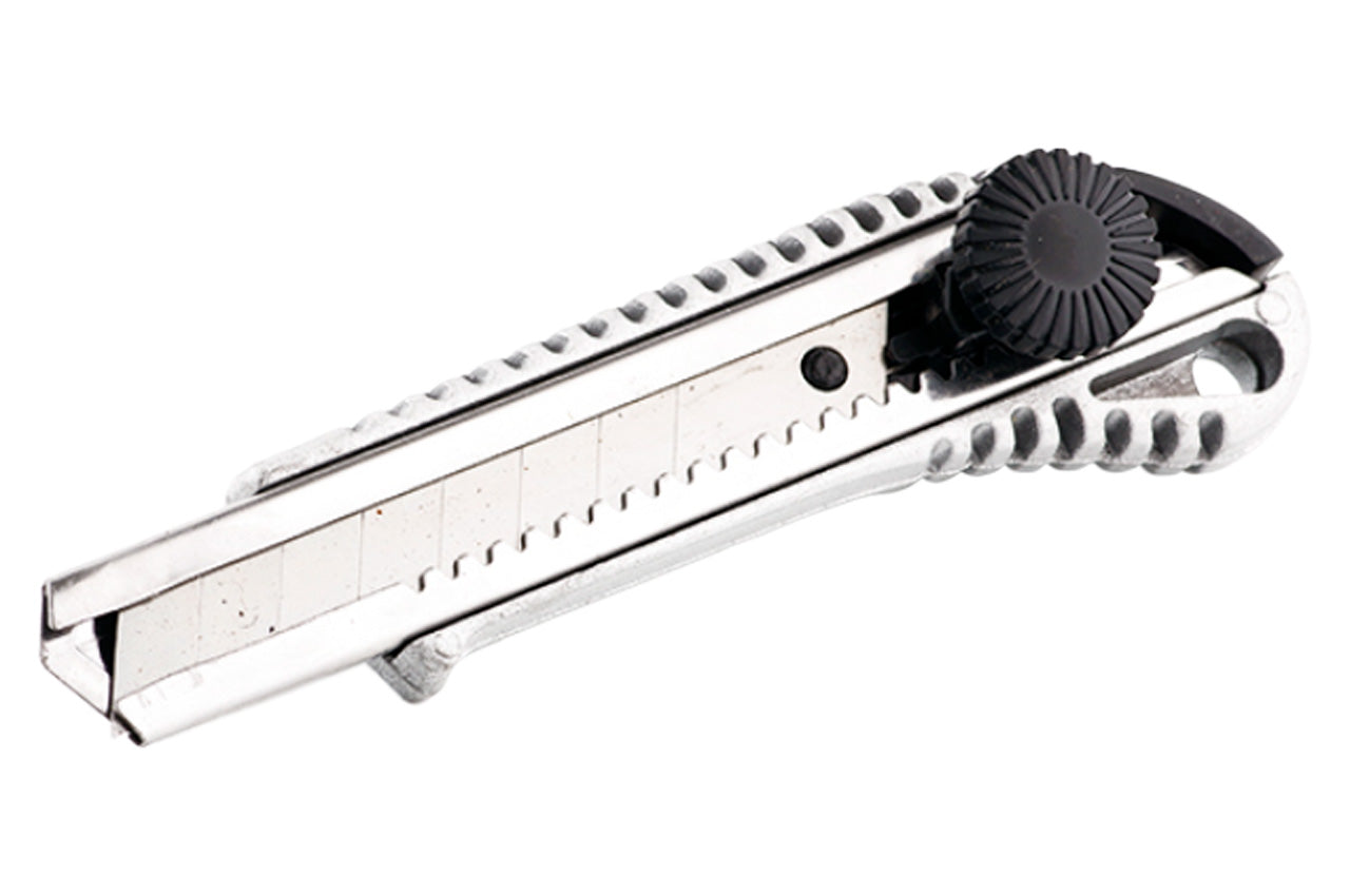 Предназначена для разрезания бумаги, картона и других материалов с применением значительных усилий. Нож выдвижной металлический, прорезиненный корпус, автозамок. Материал лезвия: Инструментальная сталь; Механизм блокировки лезвий: автозамок.