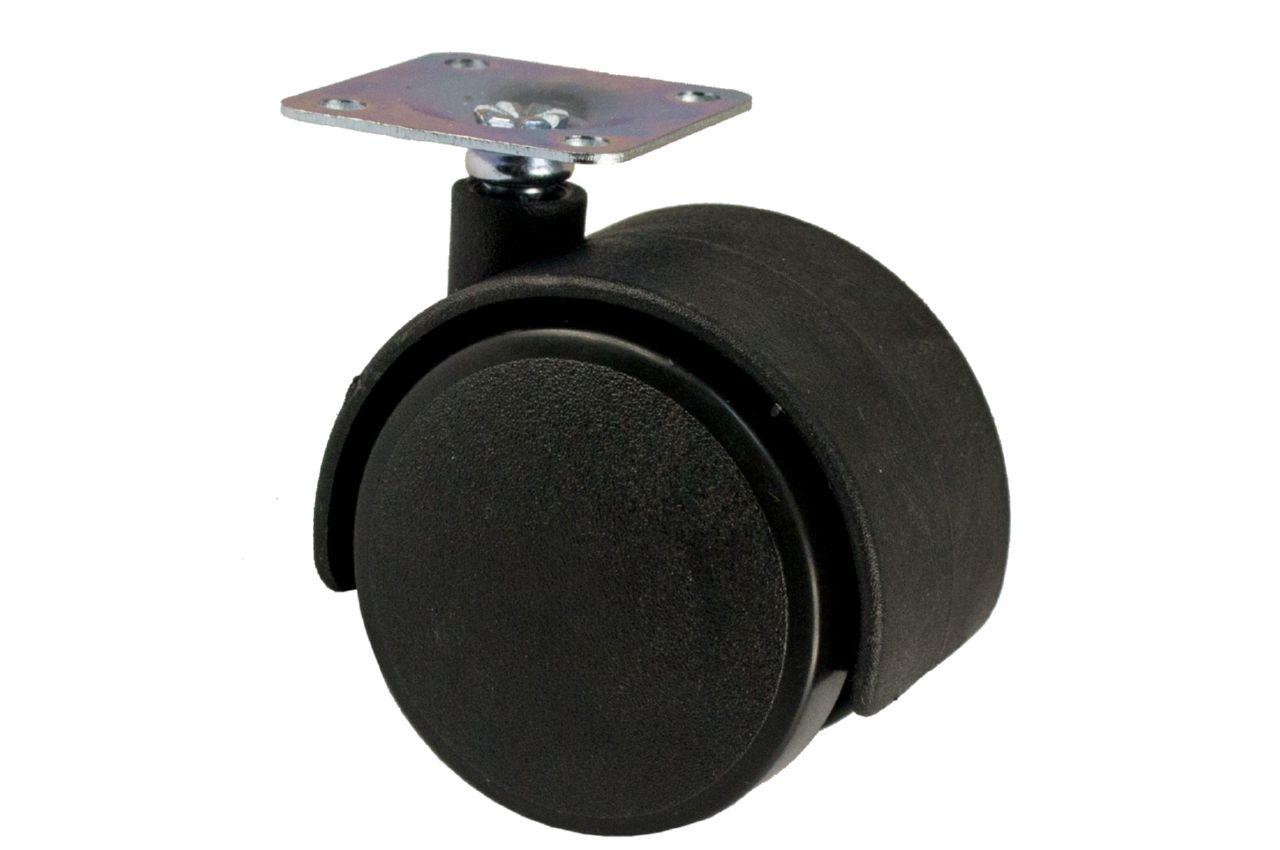 Диаметр 40 мм, с площадкой для крепления (38 х 38), без тормоза, крутящееся,цвет черный. Допустимая нагрузка до 50 кг.