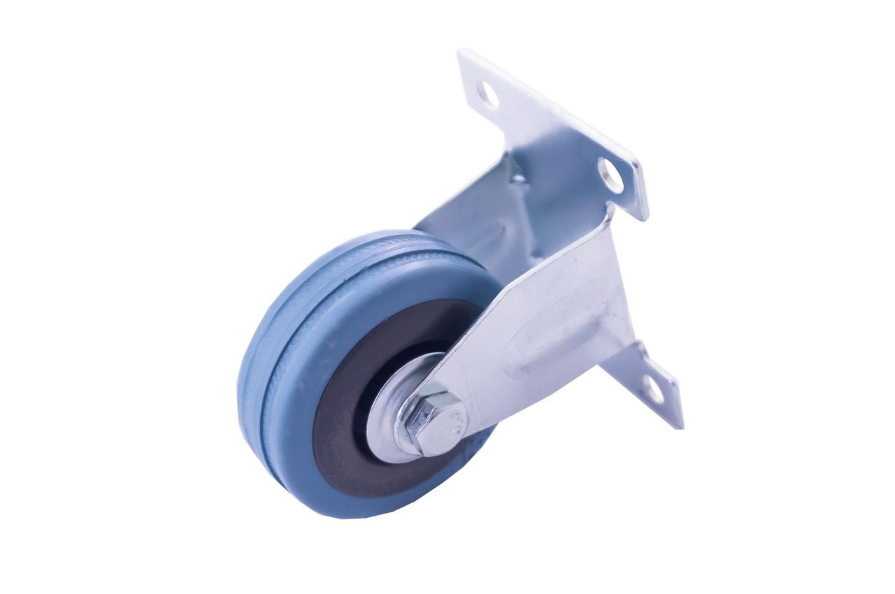 Колесо из эластичной резины с неповоротным кронштейном для тележек, тачек и любого мобильного оборудования. Диск колеса выполнен из алюминия. Колесо вращается на качественных шариковых подшипниках.