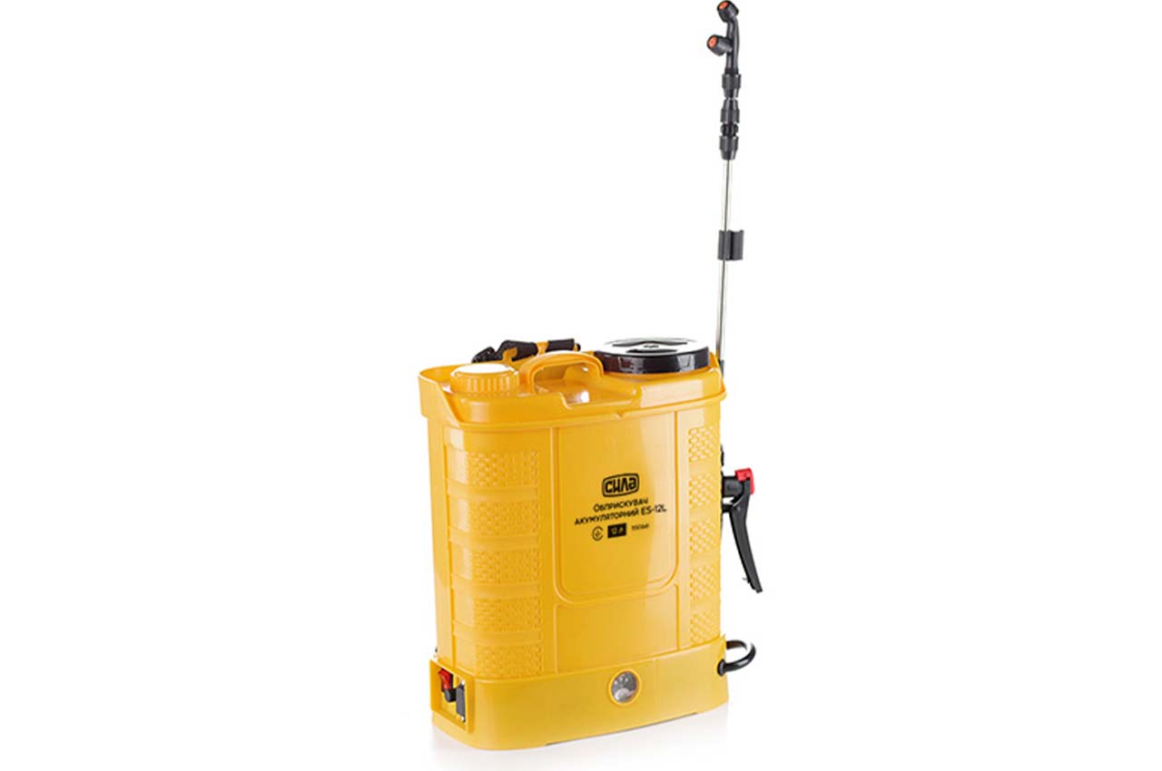 Опрыскиватель аккумуляторный Сила - оснащен баком объемом 12 изготовленным из ударопрочного полипропилена. Устройство питается от аккумуляторной батареи 12 В. На одном заряде инструмент способен проработать от 2 до 3 часом, при этом время полной зарядки составляет 8-12 часов. Опрыскиватель оборудован индикатором заряда аккумулятора для удобной работы. Модель комплектуется 4 насадками: душевой, душевой регулируемой, туманообразующей двойной и веерной. Предназначена для работы с растворами ядохимикатов и дезинфицирующих средств, воды.