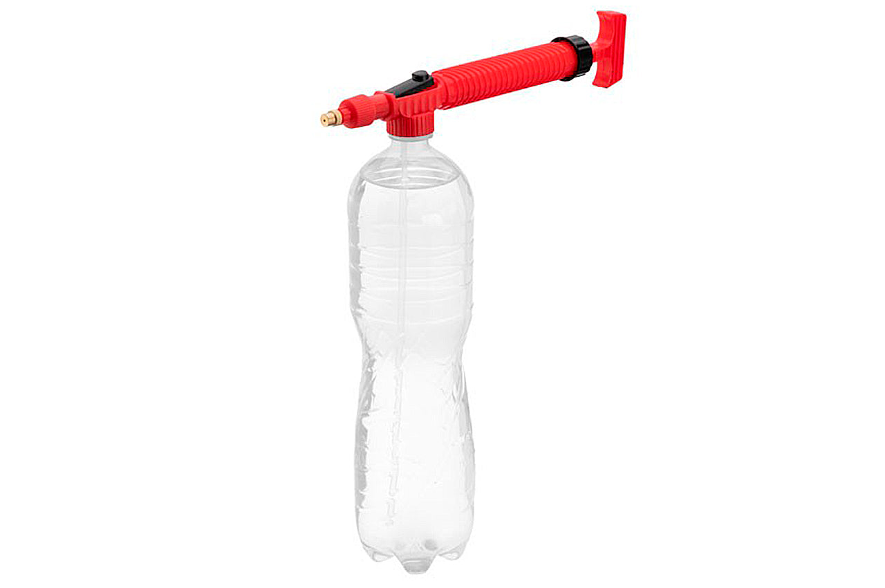 Распылитель легко устанавливается на любую пластиковую бутылку из-под напитков со стандартным горлышком разного объема от 0,5 до 2,5 литров.