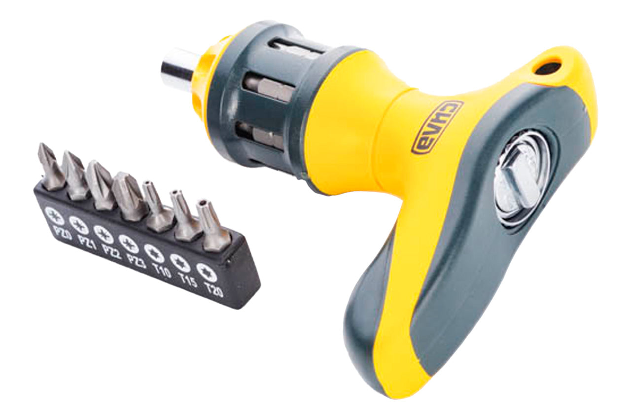 Биты: SL6, SL5, SL4, SL3, PH0, PH1, PH2, PH3, T15, T20, T10, PZ0, PZ1, PZ2, PZ3; Материал рукоятки: термопластичная резина; Материал стержня: хром-ванадиевая сталь; Тип отвертки: реверсивная