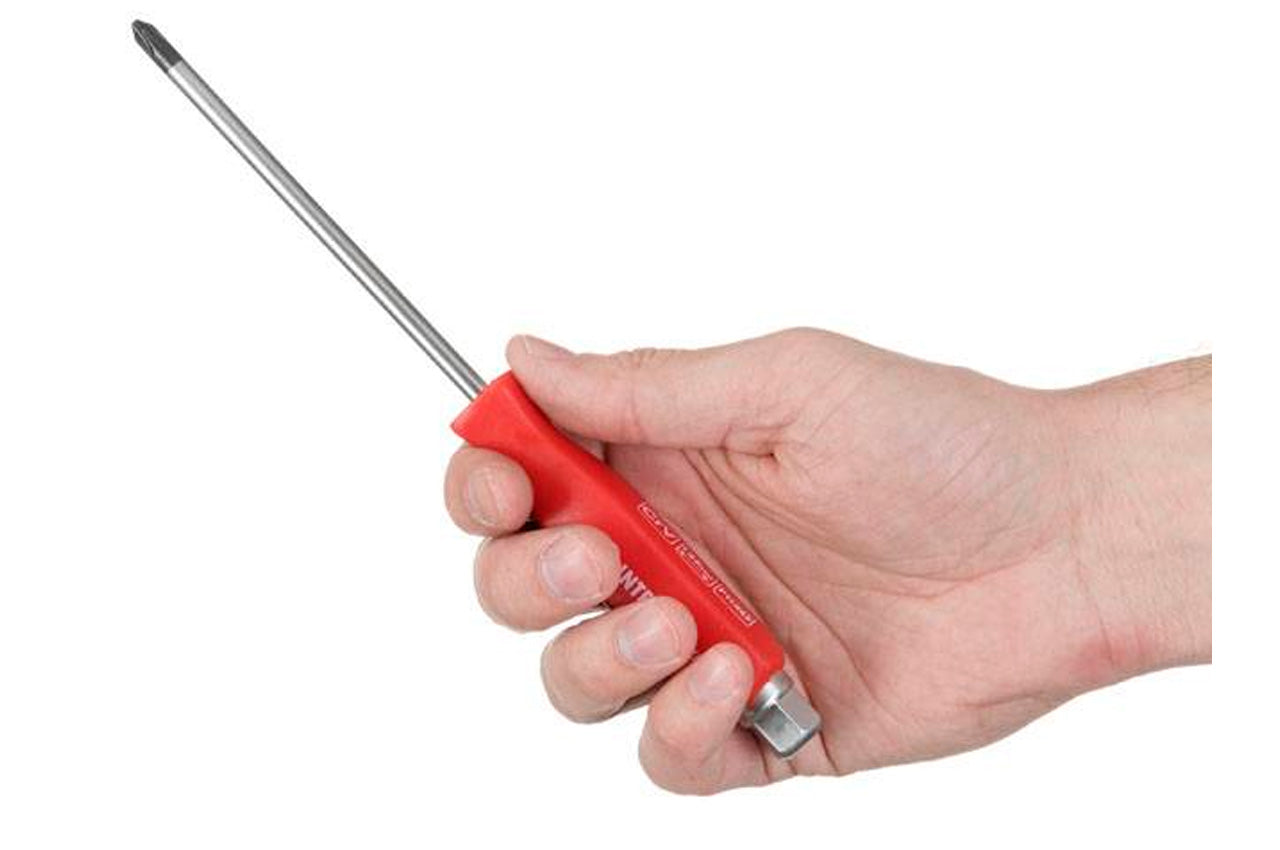 Отвертка крестовая ударная, закаленное и намагниченное жало, сталь CrV. Рабочая длина: 125 мм