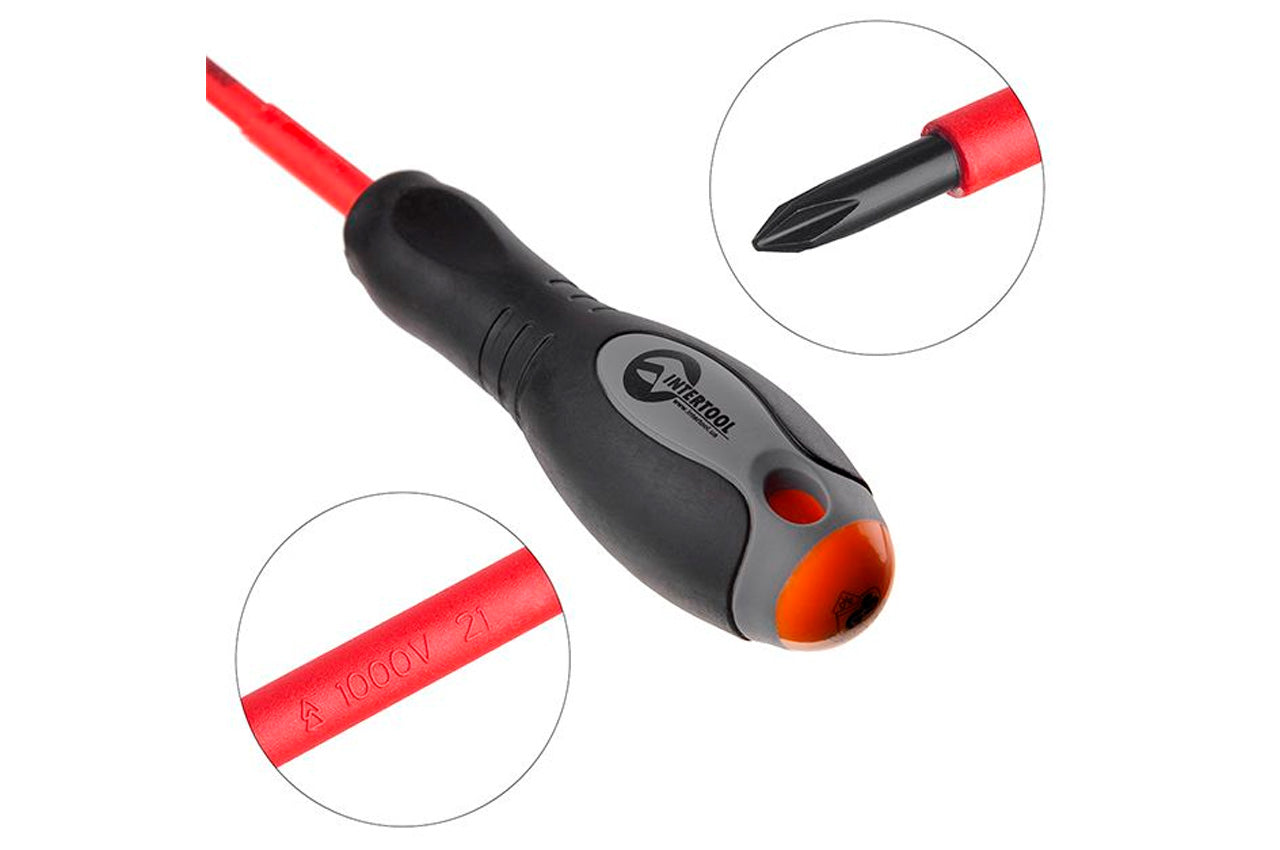 Отвертка Intertool - крестовая PH1 х 80 мм 1000 В диэлектрическая