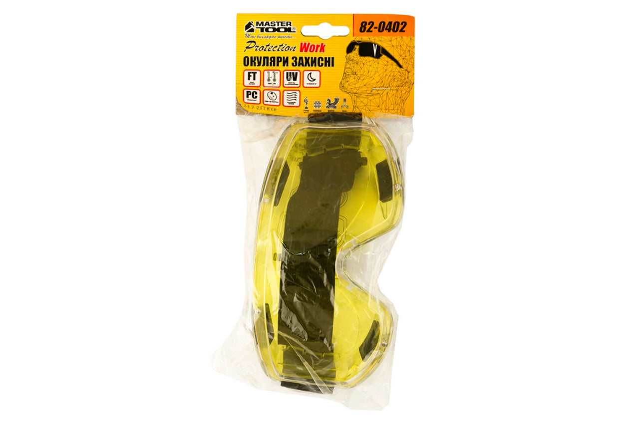 Очки-полумаска закрытые Mastertool - Anti-Scratch желтые