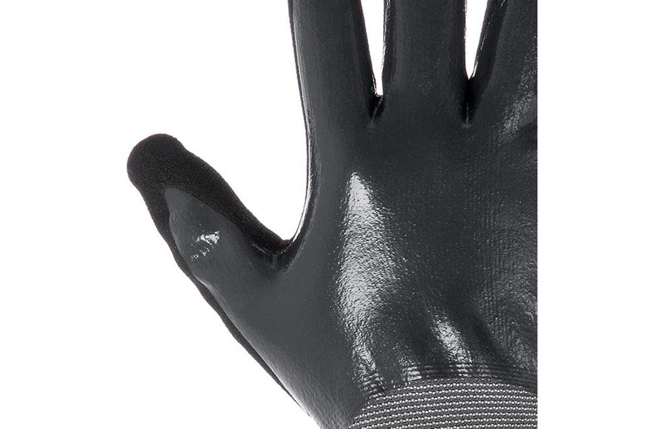 Полное покрытие перчаток гладким нитрилом и покрытие ладони пористым нитрилом для более устойчивой защиты. Обеспечиваются также противоскользящие свойства и высокая износостойкость. Не пропускают масла и бензина, которыми могут быть покрыты детали машин и механизмов. При этом перчатки очень эластичны и не сковывают движения пальцев.