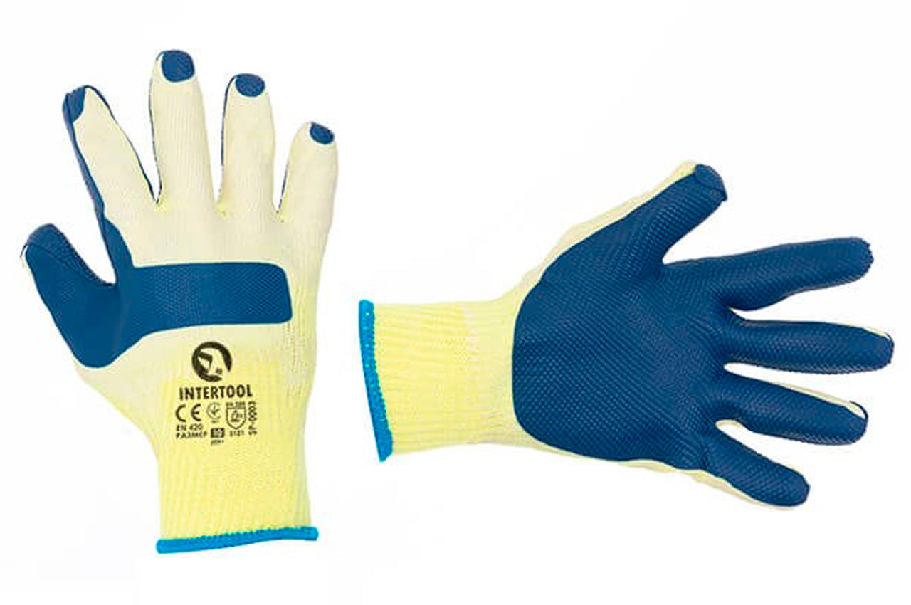 Перчатки Intertool - стекольщика латексная 10" (синяя)