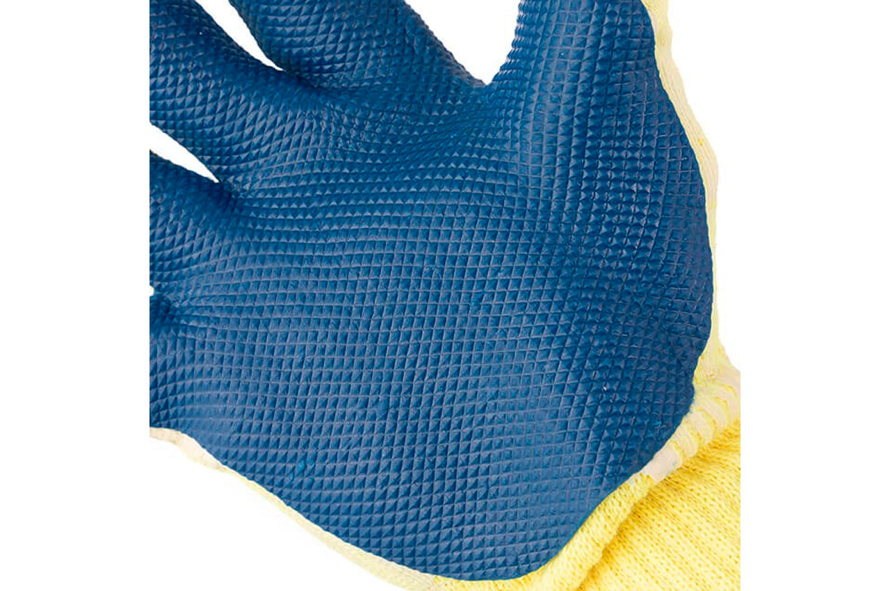 Рабочие перчатки с латексным покрытием - это один из самых важнейших средств защиты, используются для защиты рук от травм и повреждений на производстве рабочими и мастерами в быту. Сфера применения таких перчаток очень широка: применяются в строительстве, складском деле, во время погрузочно-разгрузочных работ. Также пригодятся в хозяйстве, для работы с камнем, стеклом, плиткой, кирпичом, деревом и прочими материалами с грубыми и колющими поверхностями. Перчатки защищают руки от порезов, проколов, предотвращают повреждение стеклом, острыми краями материалов. Соответствуют европейскому стандарту качества EN 388. Отличаются повышенной стойкостью к истиранию и долговечностью. Перчатки каменщика (стекольщика) отлично защищают руки, благодаря плотному покрытию из латекса, нанесен на основу методом вулканизации и характеризуются повышенной износостойкостью и прочностью. Основа же состоит из поликоттона, обеспечивает гигиеничность и комфорт во время работ. Манжет-резинка обеспечивает надежную фиксацию и перчатка удобно сидит на руке, защищая от попадания вовнутрь пыли и мелких частиц. Модель перчаток SP-0003 имеет двойной латексный облив синего цвета, который также нанесен с тыльной стороны ладони для дополнительной защиты кистей рук от повреждений. Рельефная поверхность латекса повышает свойства сцепления и обеспечивает отличный захват материалов, имеющих гладкие, скользкие поверхности, при этом сохраняется отличная чувствительность пальцев и ладони. В таких перчатках работать не только удобно, но и безопасно! Размер: 10"; Цвет: синий
