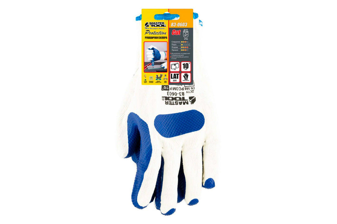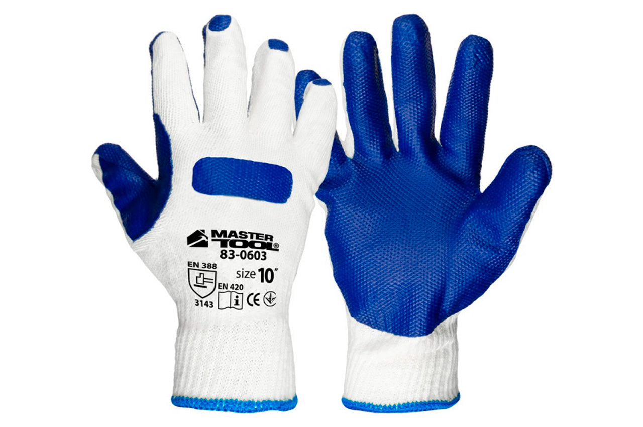 Перчатки Mastertool - стекольщика латексная (синяя) усиленная ладонь 10"