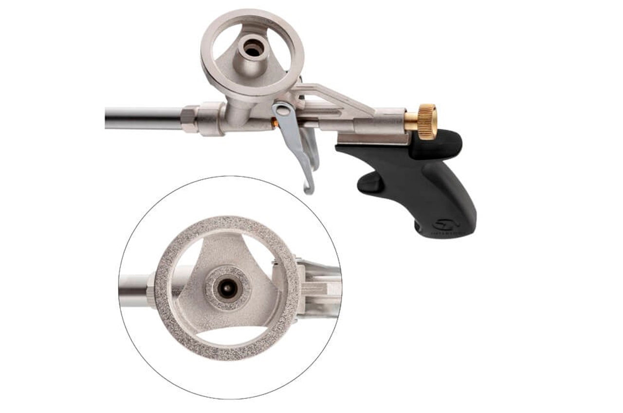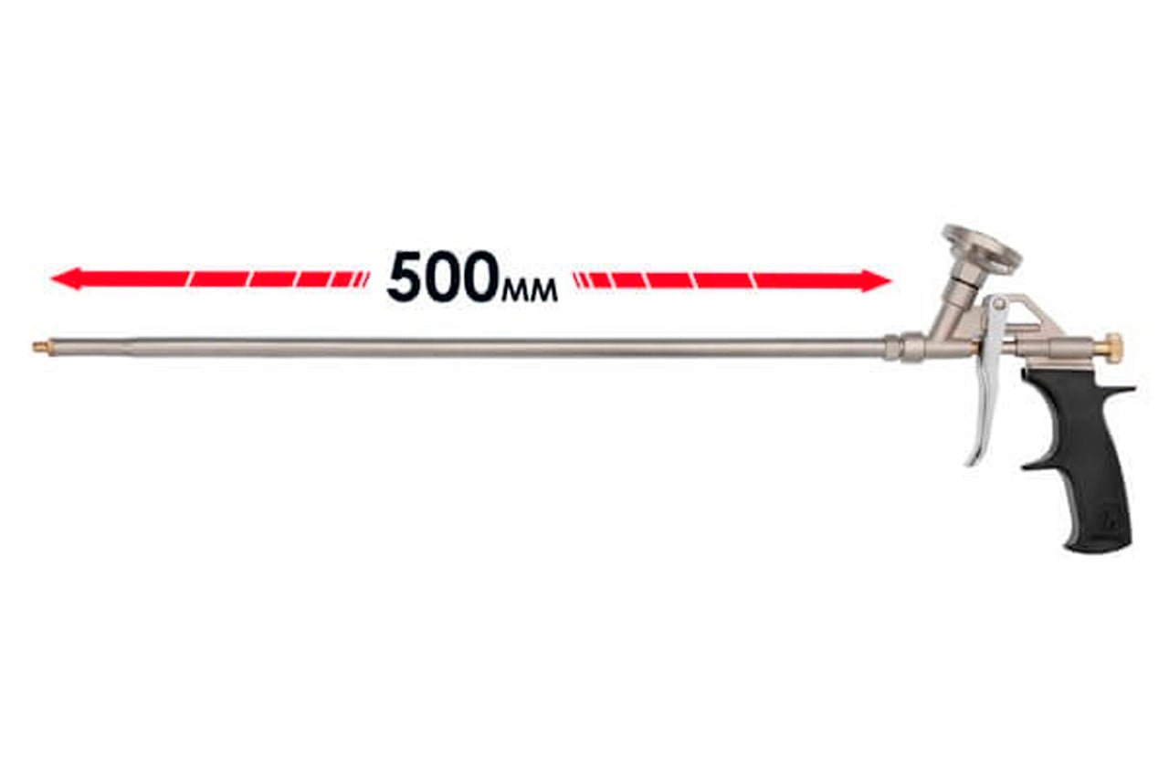 Уникальный пистолет с длиной трубки подачи - 500 мм, обеспечит точную доставку пены максимально глубоко в труднодоступные места, без использования дополнительных насадок. Преимущество длинной трубки подачи пистолета для пены перед сменными и дополнительными насадками, которые часто используют монтажники, обусловлено возможностью точной и экономичной доставкой материала в труднодоступные места с сохранением свойства пены. Также сохраняется правильная ячеистость, плотность застывшей пены, процесс расширения пены прогнозируемый и контролируемый, как первичный, так и вторичный. Монтажная пена, клей-пена поданная напрямую из пистолета и та же пена, поданная из пистолета через дополнительный удлиняющий наконечник имеет абсолютно разную структуру. С использованием дополнительных наконечников подача становится менее равномерной, а пена более рыхлой. Первичное расширение перегружено воздухом и не свойственно составу используемой монтажной пены. Кроме всего прочего расход пены больше. Пена, поданная через удлиняющие насадки, имеет непрогнозируемое вторичное расширение и рыхлую структуру застывшего материала. Пистолет для монтажной пены PT-0650 решает все вышеуказанные проблемы. Длинный наконечник 500 мм доставляет пену глубже, чем другие пистолеты без изменения структуры пены, и позволяет точно отрегулировать подачу материала, что обеспечивает точную дозировку и экономит расход материала. Игла и трубка изготовлены из нержавеющей стали и не подвержены коррозии. Надежный запорный клапан не заставит вас беспокоиться о выходе пены из пистолета при смене баллона, а также обеспечивает герметичность при хранении пистолета. Латунный наконечник гарантирует герметичность иглы, даже при очень длительной эксплуатации пистолета. Металлический курок абсолютно не подвержен износу. Литой алюминиевый корпус легкий и надежный. Не утомляет руки и не дает шансов для утечки пены, стойкий к механическим повреждениям. Четыре дополнительных наконечника в комплекте обеспечивают подачу пены в труднодоступные места и специфическое применение пистолета. Гарантирована бесперебойная эксплуатация на протяжении максимально длительного периода времени в любом диапазоне температур окружающей среды, а также в условиях высокой влажности, при выполнении монтажных работ любой сложности. Количество насадок: 4 ед.