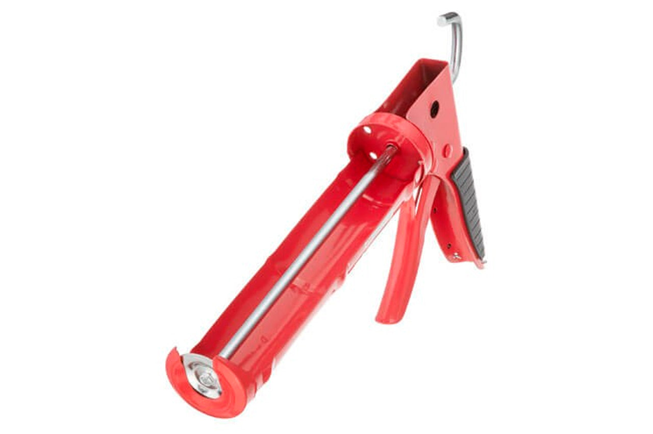 Пистолет для выдавливания силикона с обрезиненной рукояткой применяется для выдавливания различных герметиков из туб. Использование пистолета позволяет сделать процесс подачи равномерным, с возможностью четкого контроля всего процесса. Для более удобного применения и использования пистолет имеет прорезиненную накладку для рук. Представляет собой курок, оправу и металлический толкатель. Покрытие рукоятки: резина
