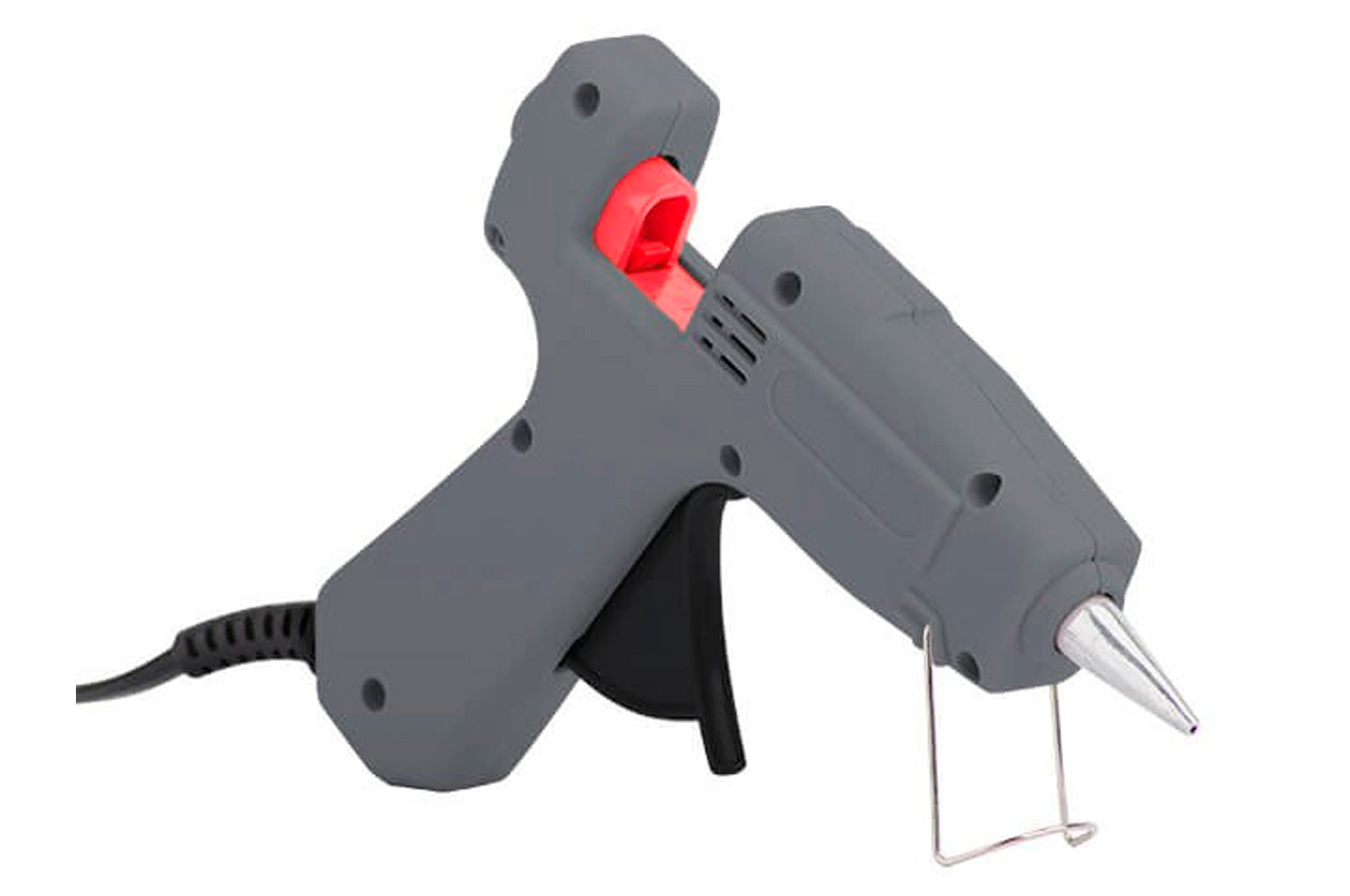 Термоклеевой пистолет RT-1101 подходит для хобби, поделок и ремонтных работ. Пригодится дизайнерам, флористам, конструкторам, рабочим и прочим умельцам в направлении «хенд-мейд». С помощью термопистолета Вы моментально склеите различные элементы, предметы, поверхности, при этом клеевые стержни хорошо взаимодействует с большинством материалов: бумагой, картоном, тканью, кожей, стеклом, керамикой, деревом и пр. Вам больше не нужно часами ждать схватывания деталей, уже после нескольких минут после нанесения у Вас получаются надежные швы, которые не уступают по прочности механическому креплению. Клеевой пистолет имеет компактный корпус с удобным курком, это облегчает работу с мелкими изделиями в условиях ограниченного пространства и позволяет точно дозировать клей в необходимых количествах. Вам не придется отключать термопистолет каждый раз от сети. На корпусе размещена кнопка включения/выключения, достаточно просто на нее нажать во время продолжительного процесса склеивания или перерыва в работе. Подпружиненная складная ножка-подставка устойчива и гарантирует безопасность во время эксплуатации. ОсобенностиУдобный и компактный; Керамический нагревательный элемент; Кнопка вкл/выкл вынесена на корпус; Индикатор электропитания; Точность дозировки клея с помощью удобного курка; Работает с мини-стержнями (d≈7-7.5 мм). Максимальная температура: 180-195 °С; Напряжение питания: 230 В; Потребляемая мощность: 20 Вт; Производительность: 5-13 г/мин.; Диаметр стержня: 7-7.5 мм
