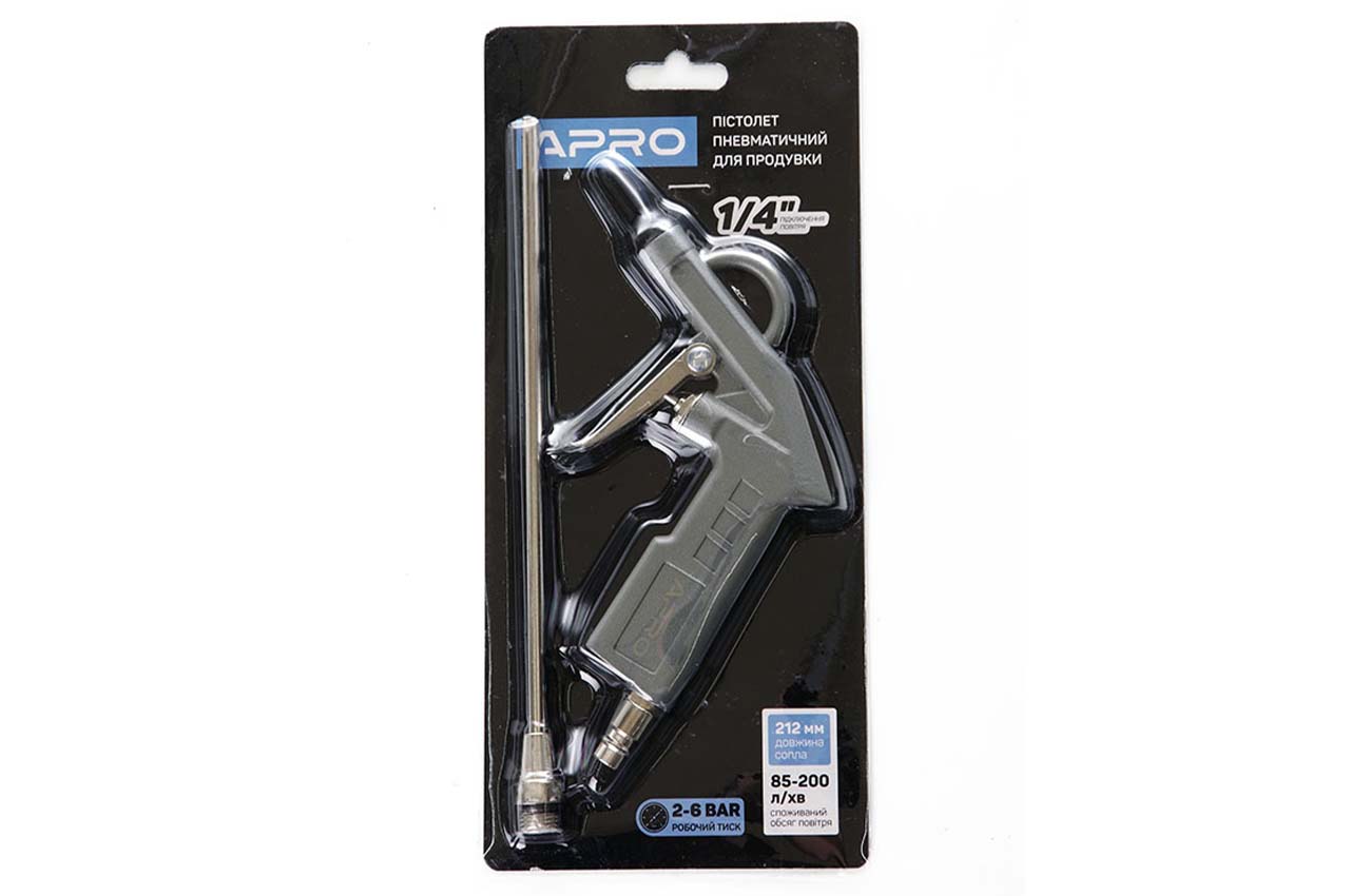 Пистолет пневматический для продувки Apro – используется для очистки поверхностей от пыли. Область применения: автосервисы, гаражи, станции технического обслуживания автомобилей.