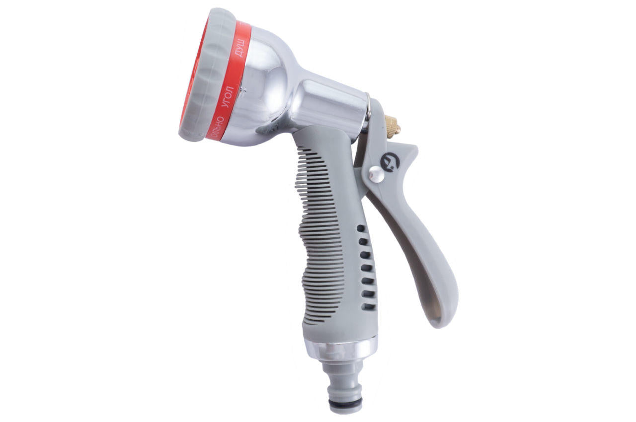 Многофункциональный пистолет распылитель GE-0005 отвечает современным стандартам - имеет хромированный корпус с эргономичной прорезиненной ручкой, предотвращающей выскальзывание из руки. Оснащен 8-ю удобно переключающимися режимами полива - от сконцентрированной струи до распыления. В комплекте с тремя надежными соединениями (адаптер универсальный с внутренней резьбой 1/2" и 3/4", коннектор 1/2" для шланга 1/2" и коннектор с аквастопом 1/2" для шланга 1/2") легко и быстро подключается к системе полива без использования дополнительных инструментов.