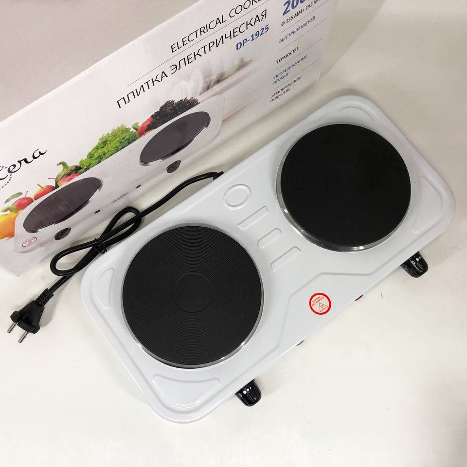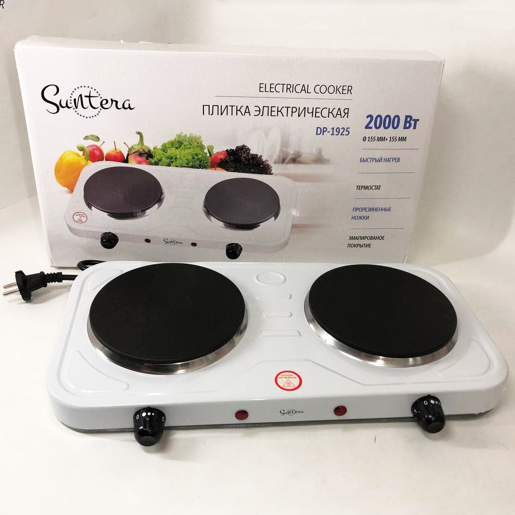 Плита электрическая Suntera DP-1925 2000 Вт, электроплита двухконфорочная настольная. Цвет: белый