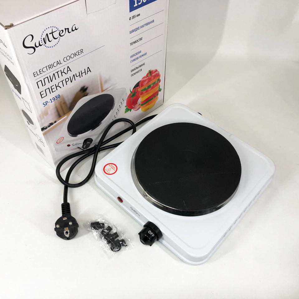 Плита электрическая Suntera SP-1930, электроплита 1 комфорка, электроплита кухонна. Цвет: белый