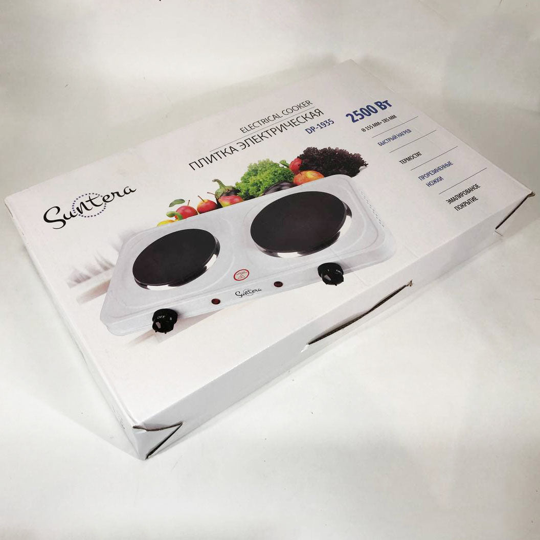 Плитка электрическая Suntera DP-1935W, 2500W, 2 конфорки разного диаметра, 2 конфорки. Цвет: белый