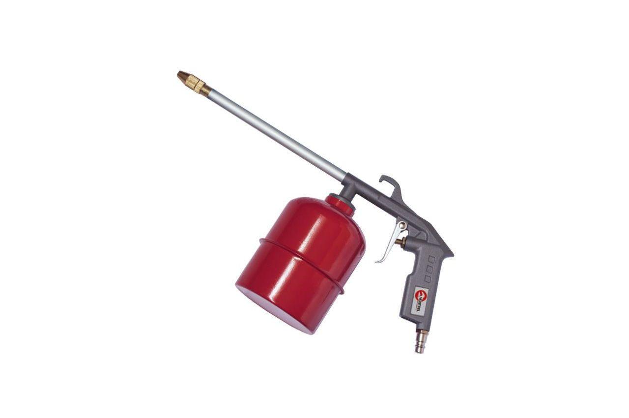 Пневмопистолет для распыления жидкостей оптимально подходит для нанесения моющих растворов, мовили и подобных материалов. Объем резервуара составляет 700 мл, а рабочее давление достигает 10 атм. Диаметр шланга: 6-8 мм; Объем бачка: 700 мл; Рабочее давление: до 10 атм