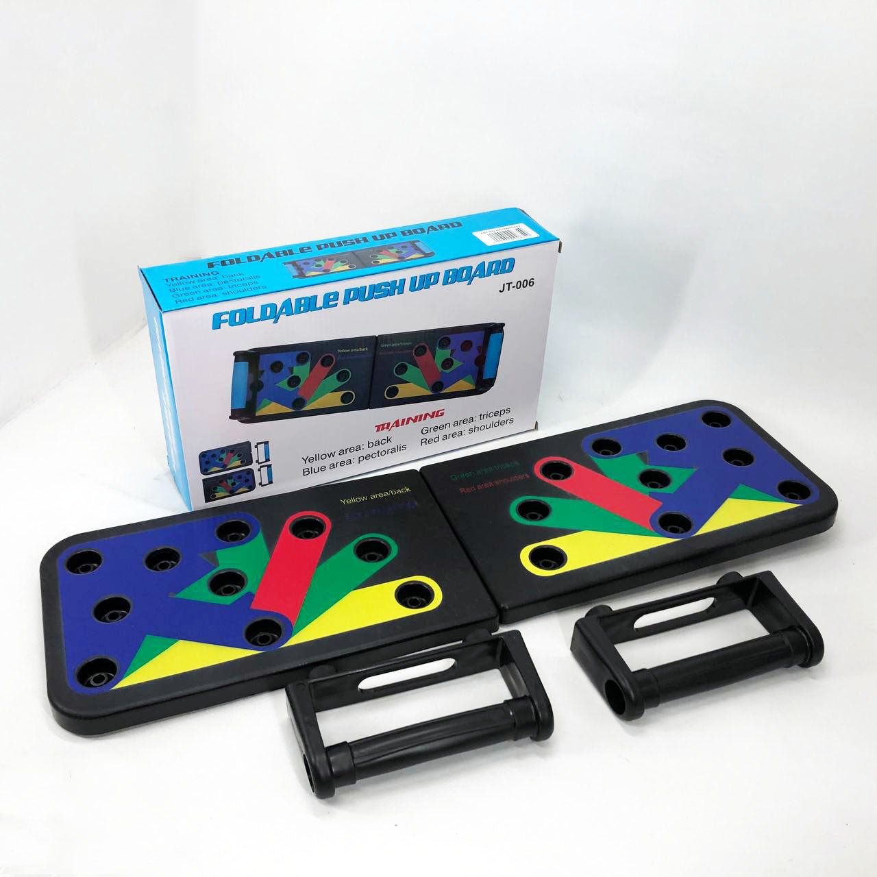 Многофункциональный тренажер для отжиманий Push Up JT-006 с цветной разметкой укрепляет и формирует всю верхнюю часть тела (грудь, плечи, спину и руки). Каждому цвету соответствует определенная группа мышц (синий – грудь, красный – плечи, желтый – спина, зеленый – трицепсы). Возможность менять положение и угол упора позволят максимально задействовать необходимые мышцы.