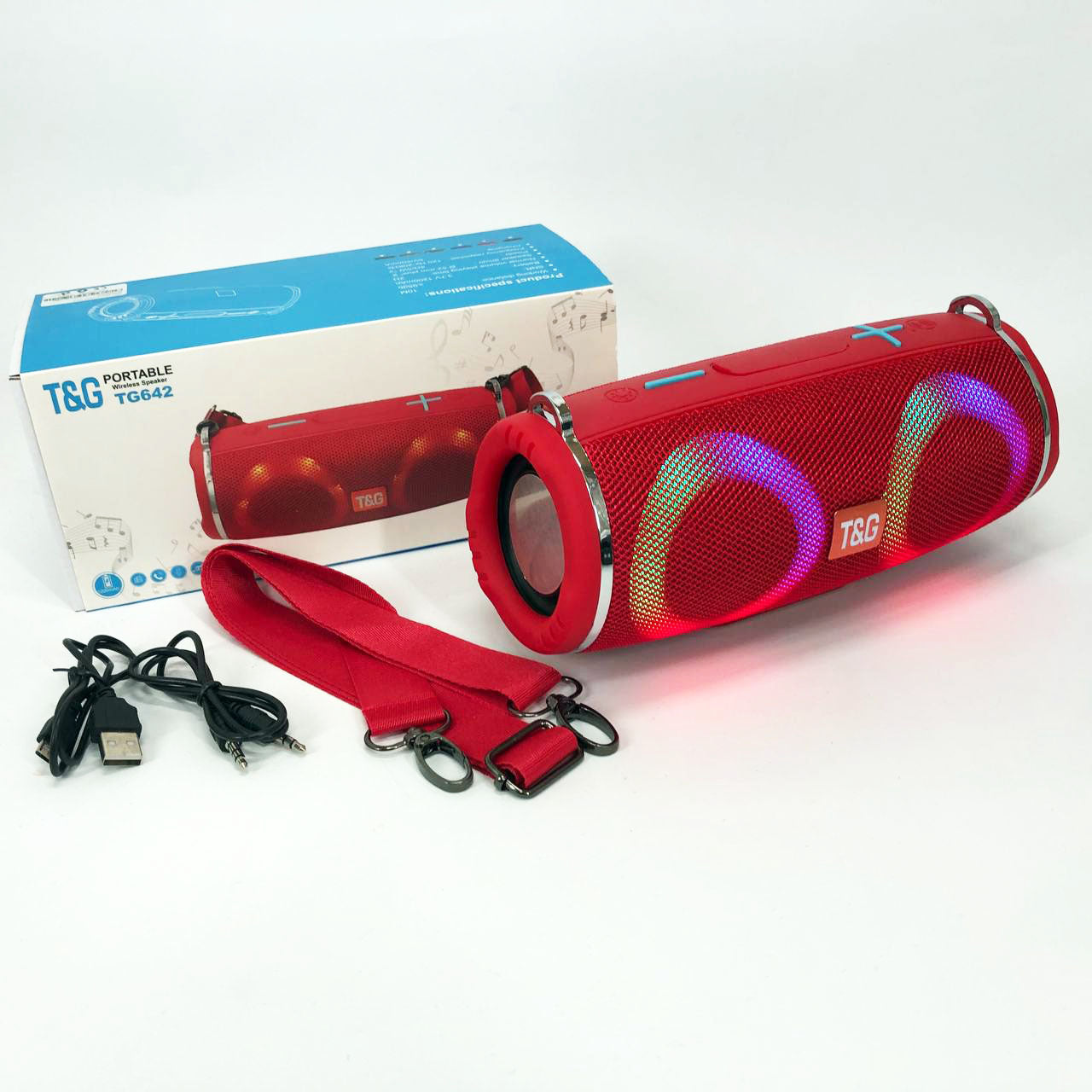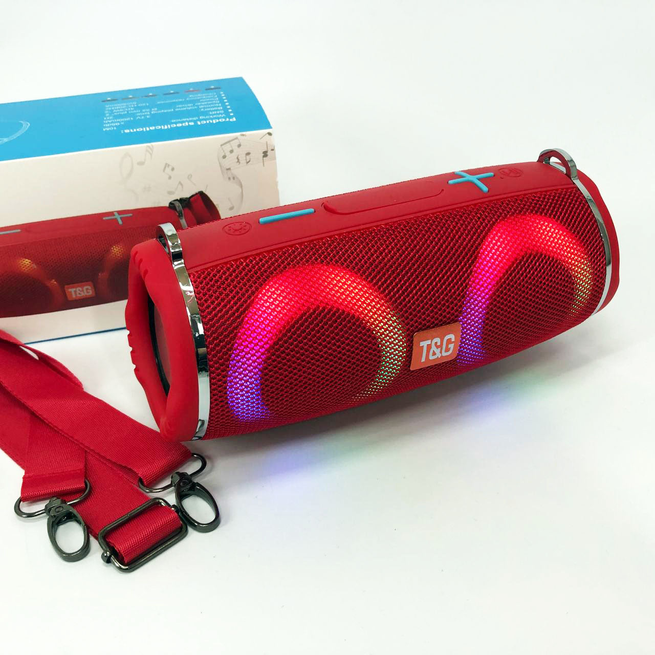 Портативная колонка TG642 с RGB подсветкой и ремешком, портативная блютус колонка. Цвет: красный