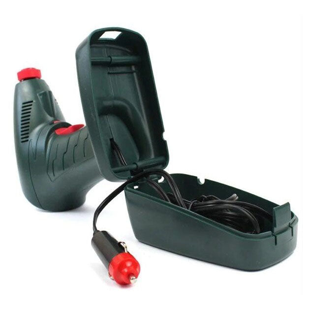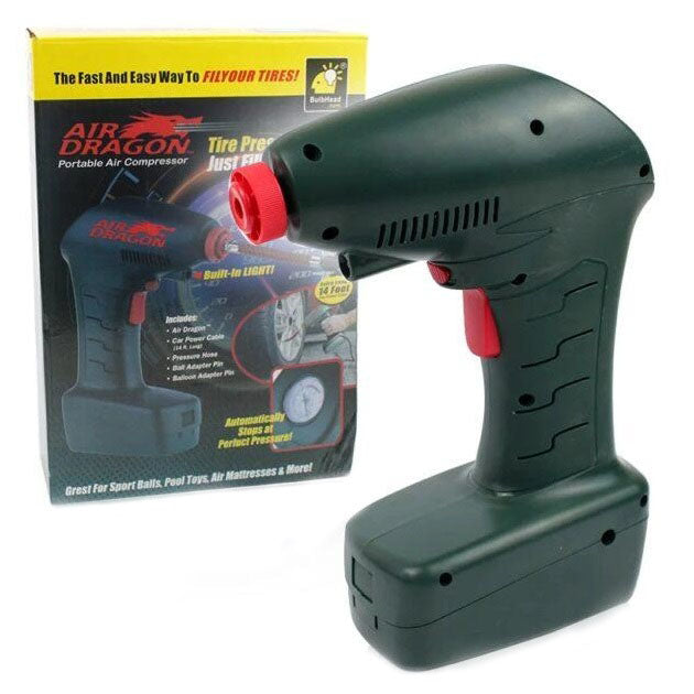 Безопасно накачайте шины, игрушки, надувной матрас, спортивные мячи и многого другого до их идеального состояния с помощью этого простого в использовании портативного пневматического компрессора который автоматически останавливается, когда он достигает заданного уровня. Цифровой программируемый манометр и функция автоматической остановки, предотвращают перекачивания. Гибкая воздушная трубка легко сгибается вокруг спиц и вписывается в плотные пространства колпаков. Включает Air Dragon со встроенным светодиодом, автомобильным силовым кабелем и напорным шлангом.