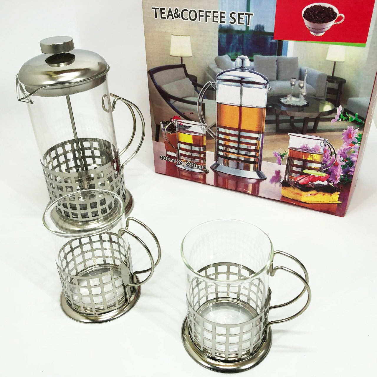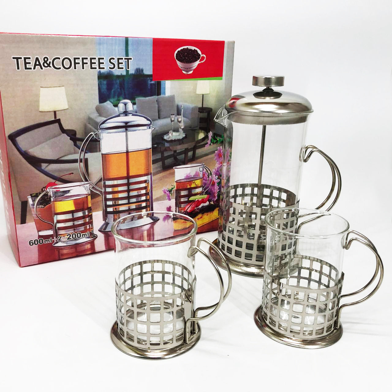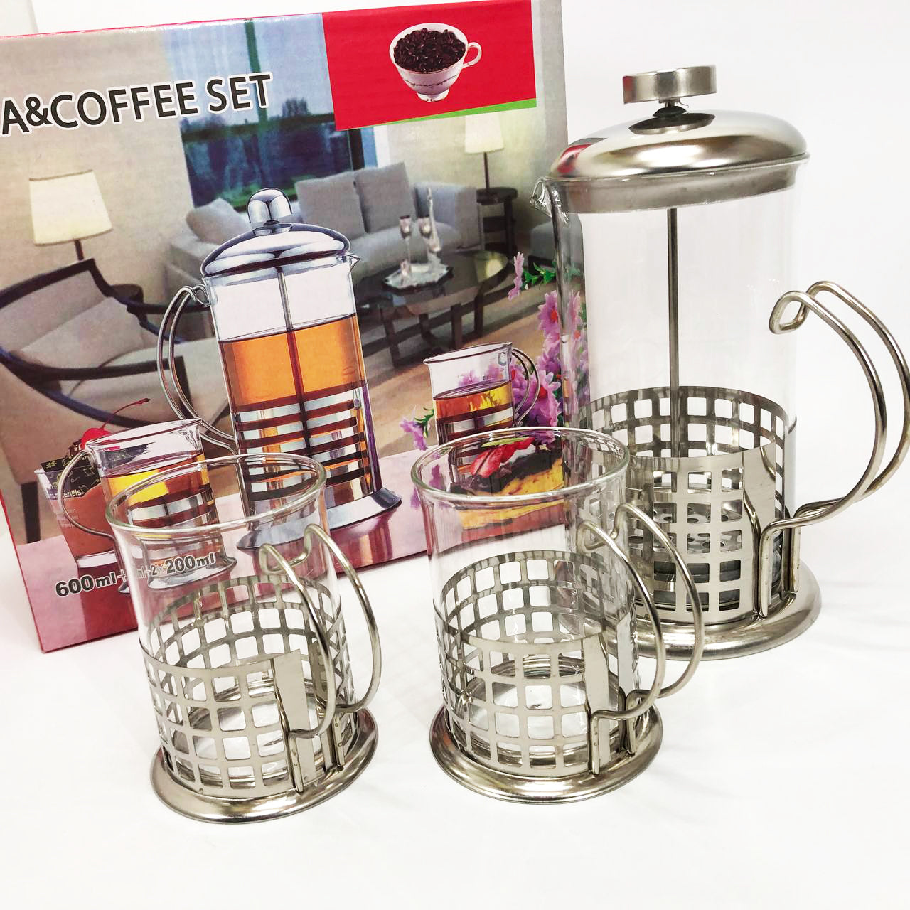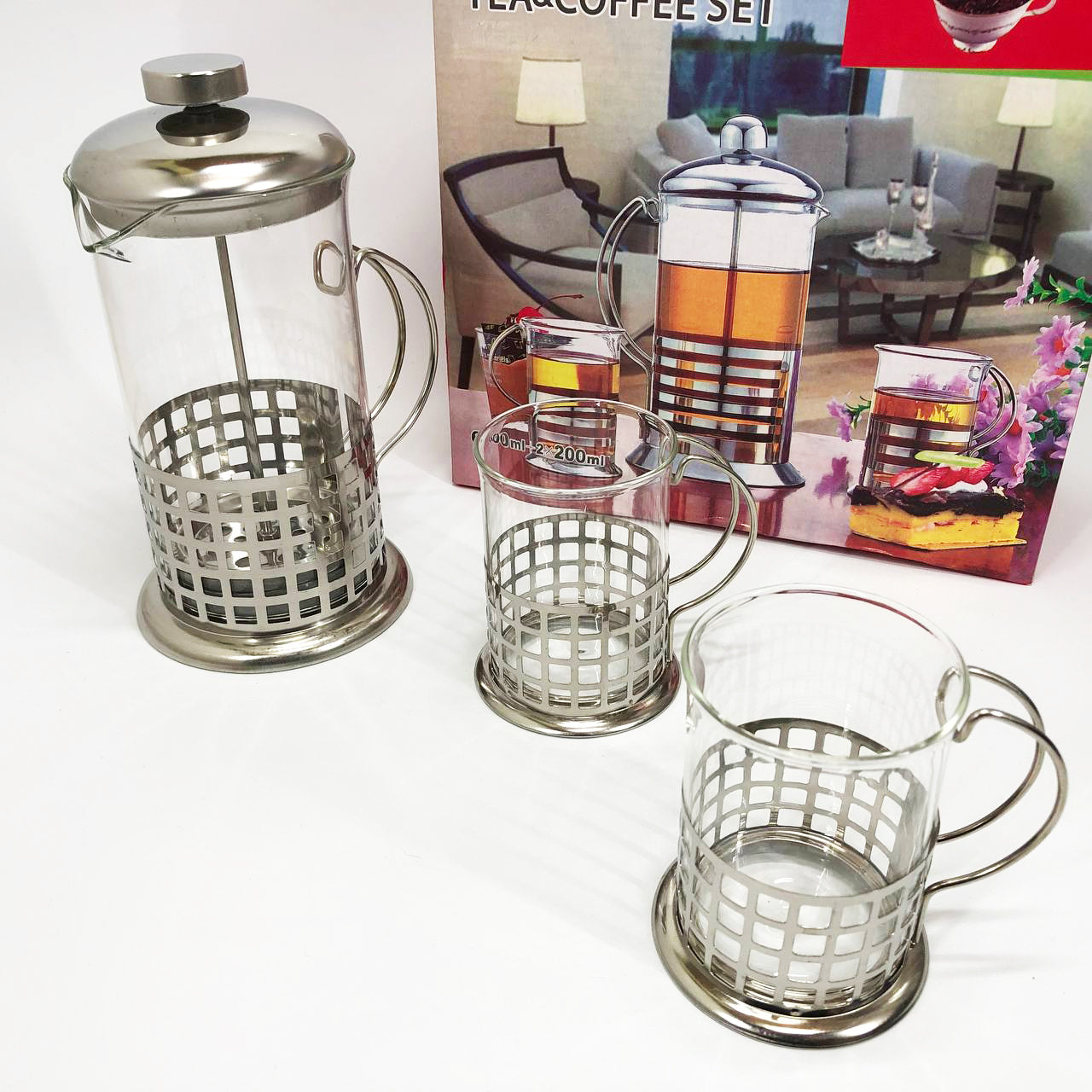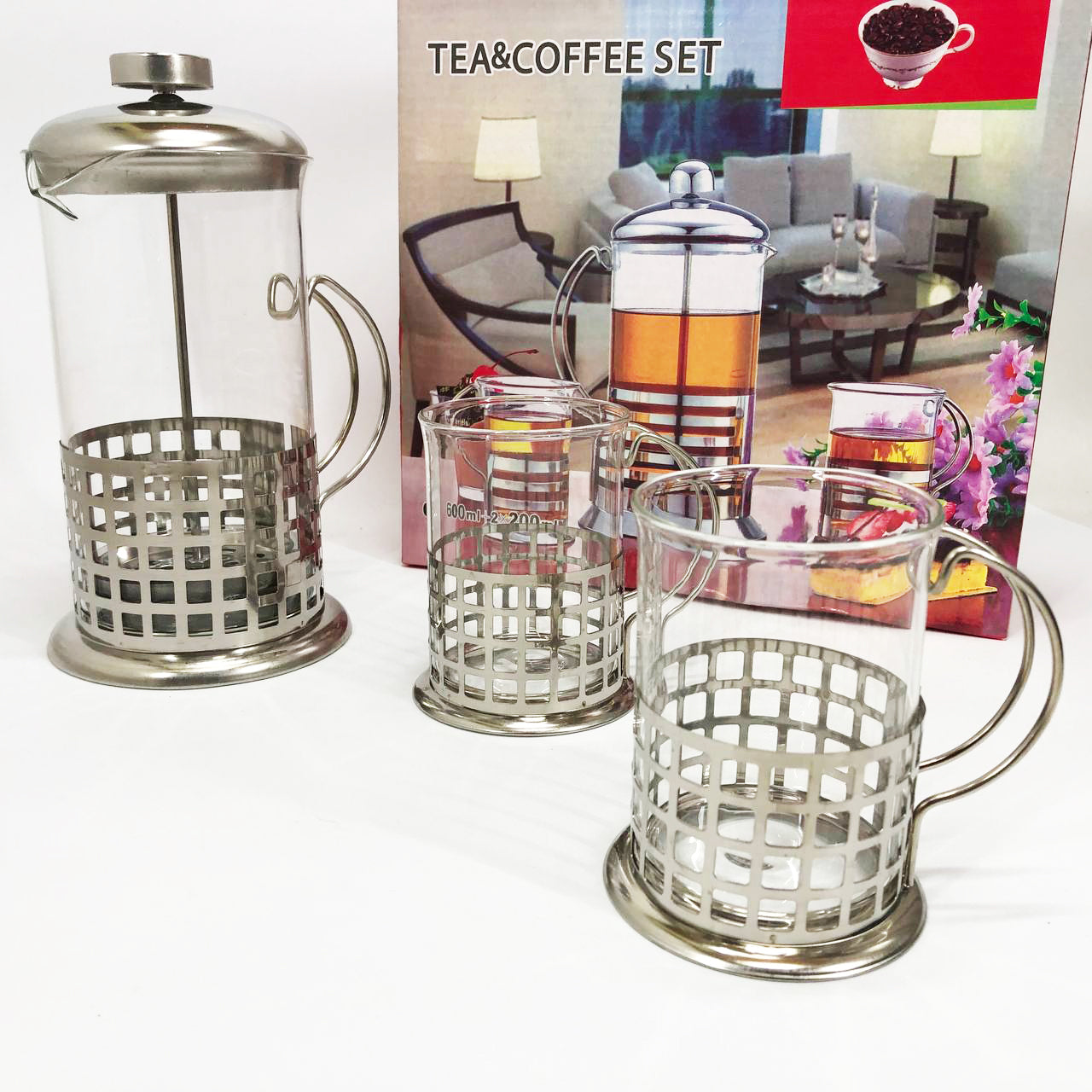Набор UNIQUE UN-1154 - комплект из пресс-заварника объемом 600 мл и 4-х чашек объемами 200 мл каждая, выполненных в одинаковом стиле. Этот практичный набор со стильным дизайном сделает еще более приятной церемонию утреннего семейного чаепития, рабочего кофе-брейка, вечерней уютной встречи с друзьями. Он бережно сохранит аромат и полезные вещества Вашего любимого сорта кофе или чая.