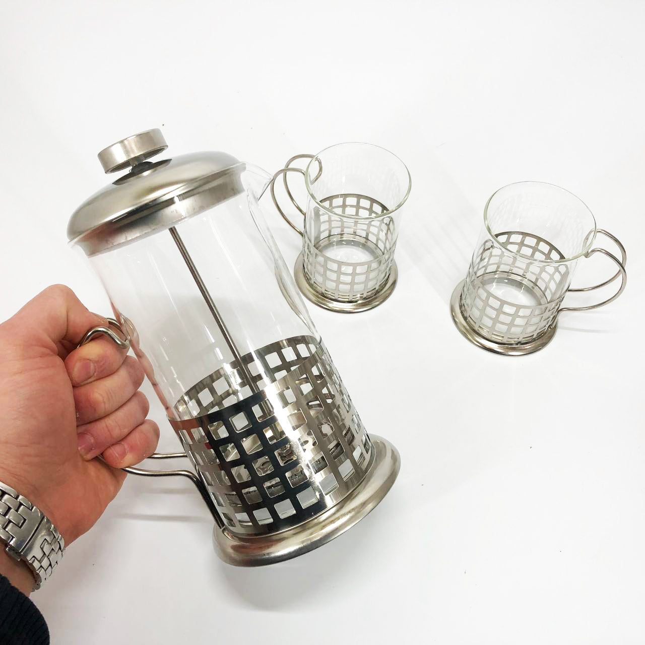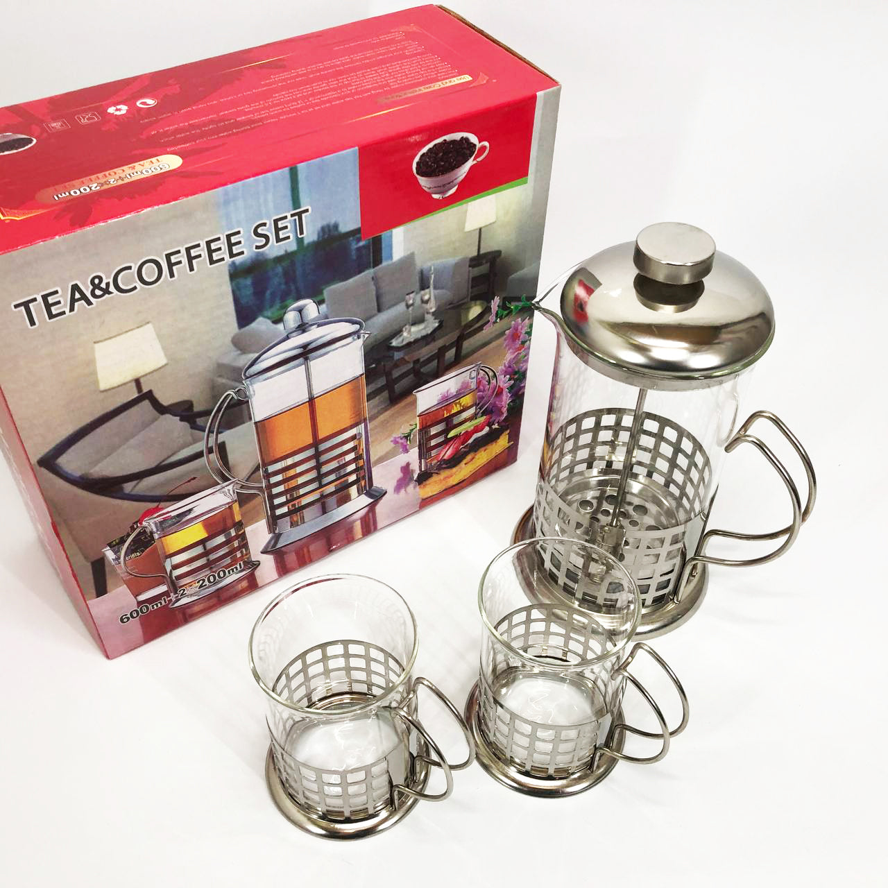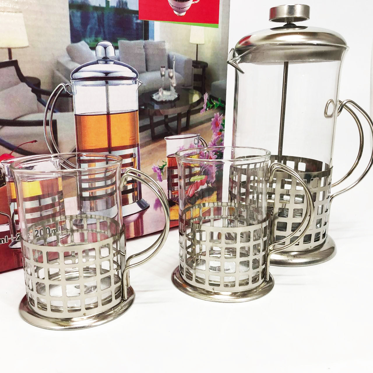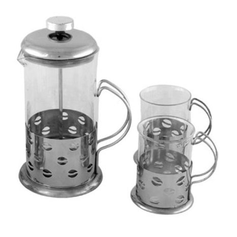 Френч-пресс оснащен колбой из жаропрочного боросиликатного стекла. Термостойкость стекла до 120°С. Колба помещена в оправу с ручкой, комплектуется крышкой с пресс-фильтром из нержавеющей стали. Набор разрешается мыть в посудомоечной машине.