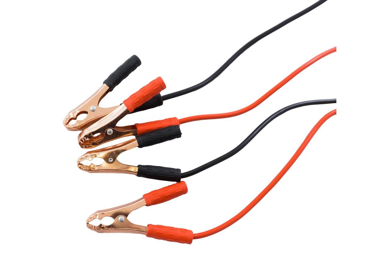 Провод для прикуривания автомобиля Сила с техническими параметрами 200А и 2,5 метра предназначается для запуска двигателя авто с севшим аккумулятором. В комплектации идет два провода черного и красного цвета. Жилы кабеля изготовлены из меди, и покрыты силиконовой изоляцией. Длина проводов по 2,5 метра, а максимальная сила пускового тока, на который рассчитаны кабели, составляет 200 Ампер. Провода имеют быстросъемные зажимы типа «крокодил». Пусковые провода позволяют оперативно осуществить запуск двигателя автомобиля с севшим аккумулятором. Материал клемм: Омедненные; Морозостойкость: -25°C; Напряжение: 12 В