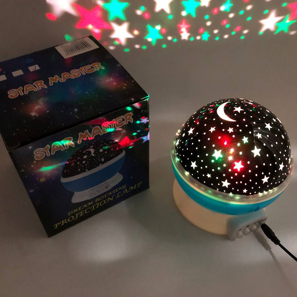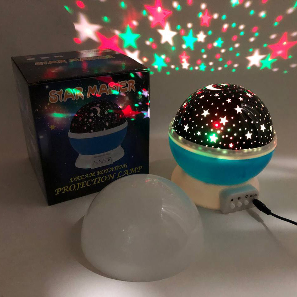 Круглый вращающийся Проектор звездного неба Star Master Dream прекрасный подарок для вашего ребенка. Он осветит комнату вашего малыша прекрасными звездами и луной. Питание светильника возможно от USB-провода или от четырех батареек типа АAA.