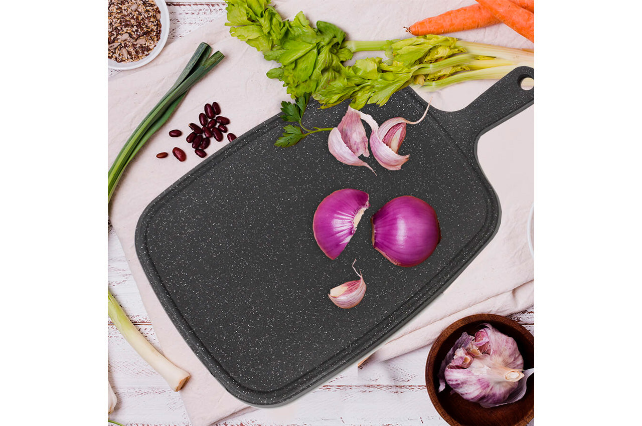 Доска разделочная MAESTRO MR1654-41 – очень удобный и практичный аксессуар на вашей кухне. Имеет нескользящую поверхность с антибактериальной защитой. Изготовлен из безопасного пищевого пластика. Ее можно использовать с двух сторон. На такой поверхности легко возделывать мясо, рыбу, нарезать овощи, фрукты и другие продукты. Доска просто моется, не царапается и не затупливает ножи.
